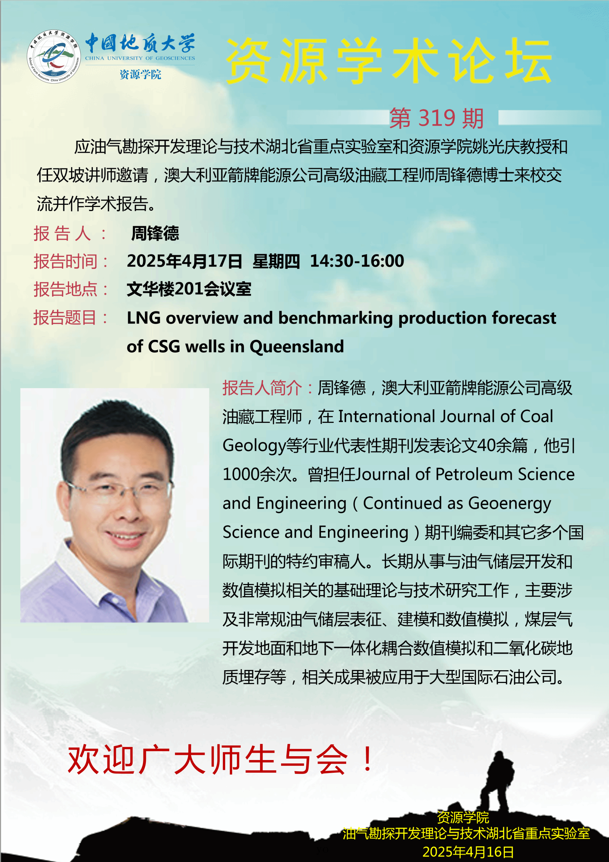 【4月17日】第319期资源学术论坛:周锋德学术报告