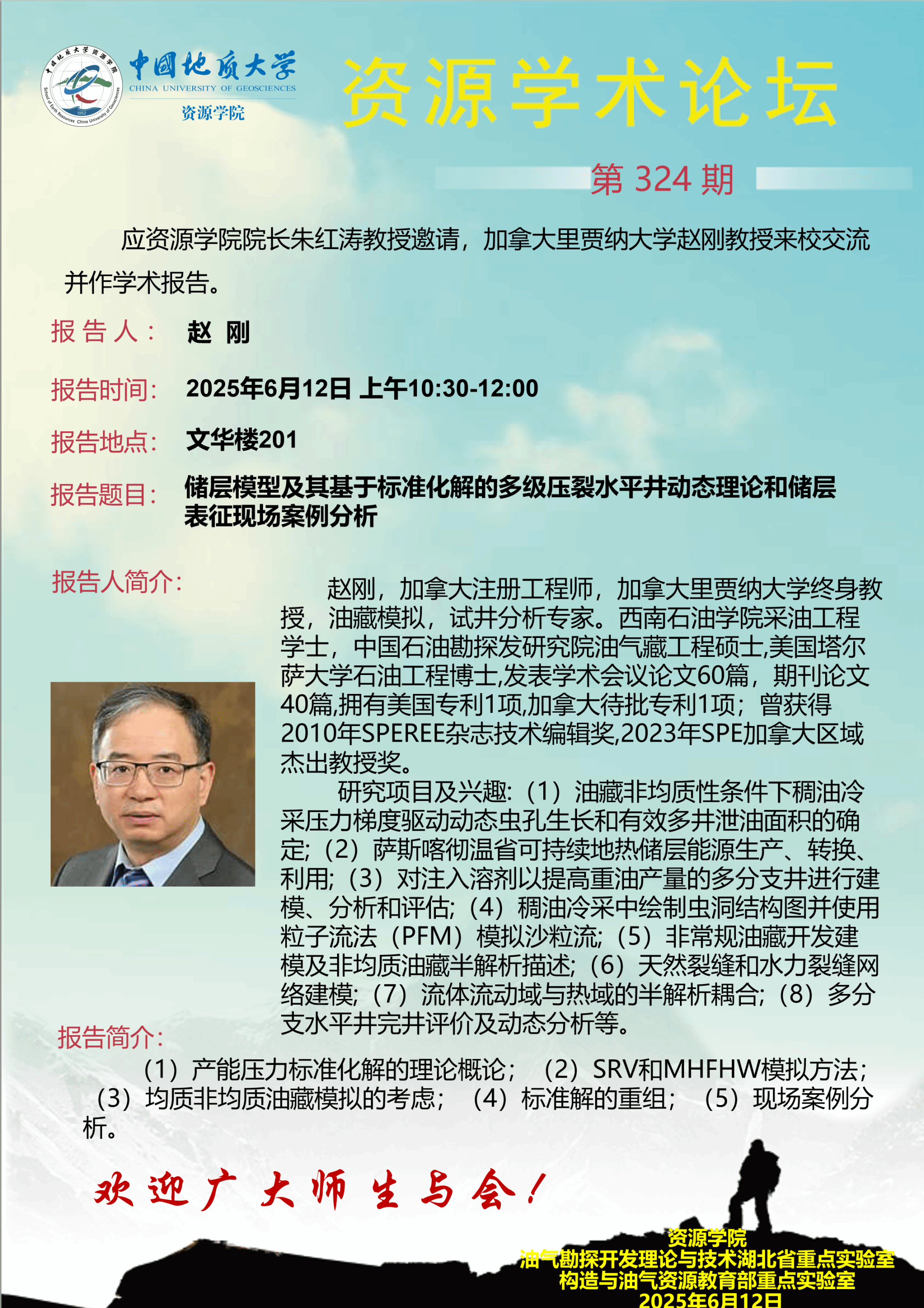 【6月12日】第324期资源学术论坛:赵刚学术报告