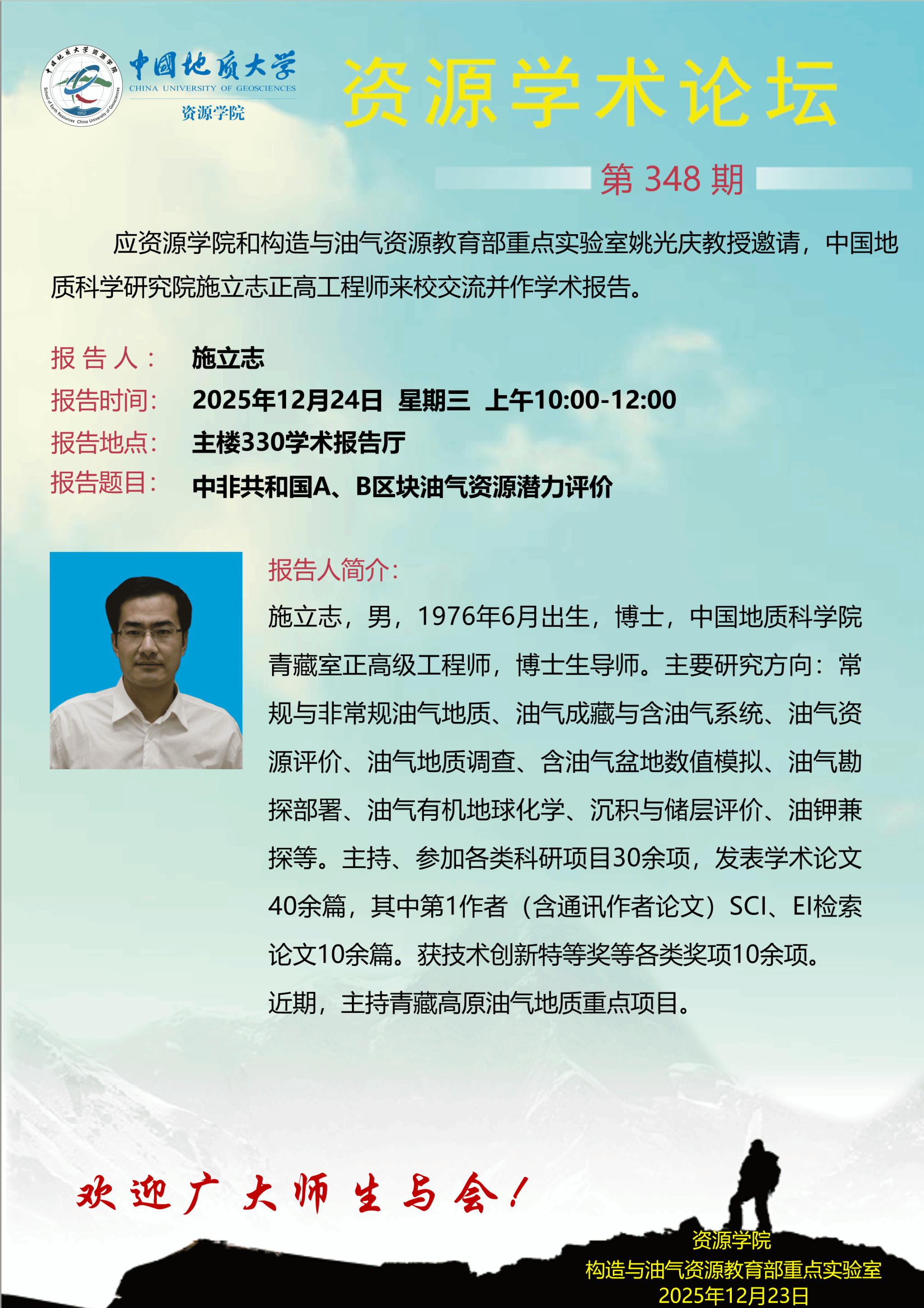 【12月24日】第348期资源学术论坛:施立志学术报告