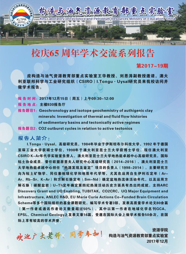 上一条:[12月26日]构造与油气资源教育部重点实验室2017-20期:刘力辉学术报告