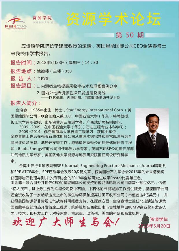 [5月23日]第50期资源学术论坛:金晓春学术报告