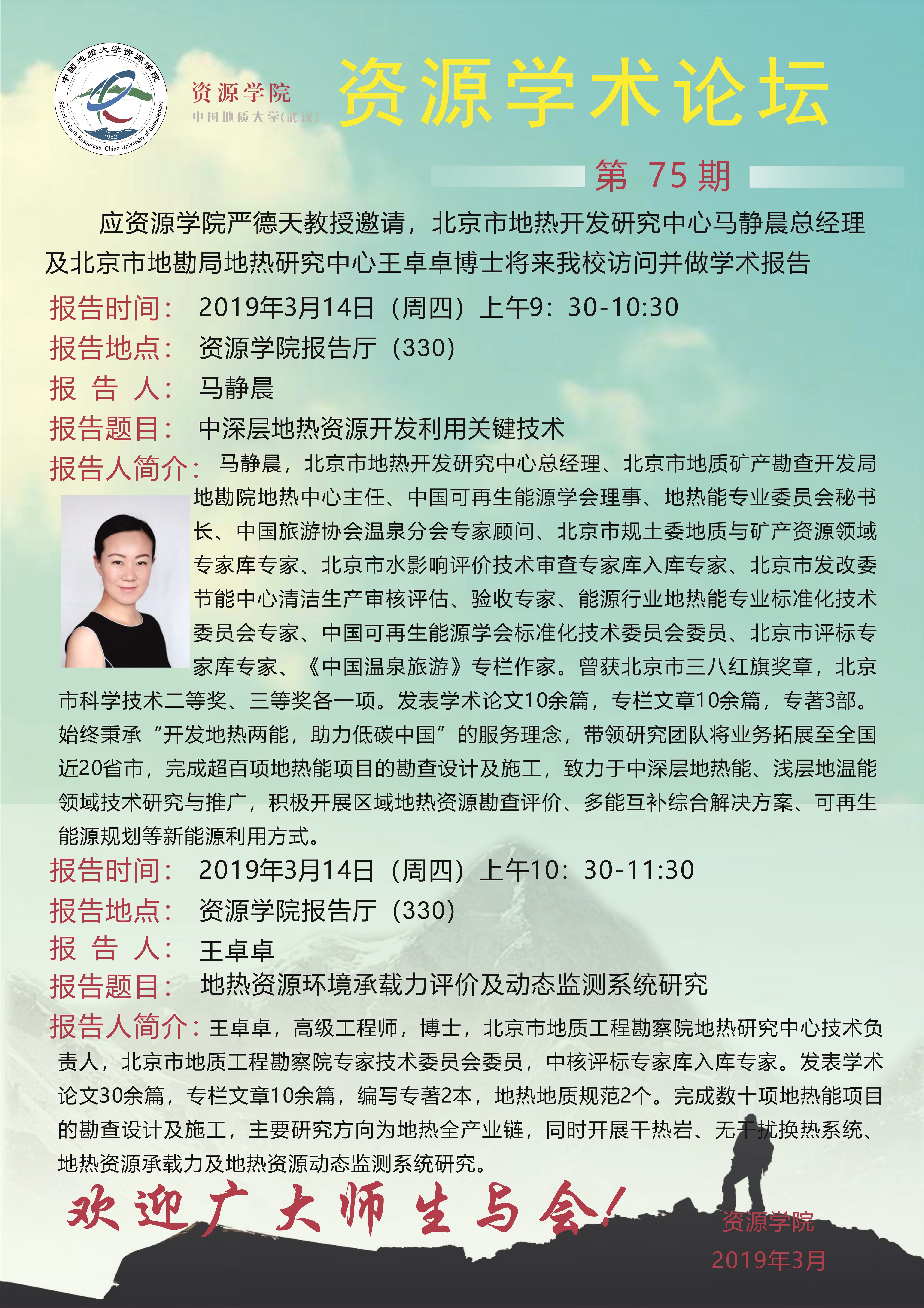 【3月14日】第75期资源学术论坛:马静晨、王卓卓学术报告