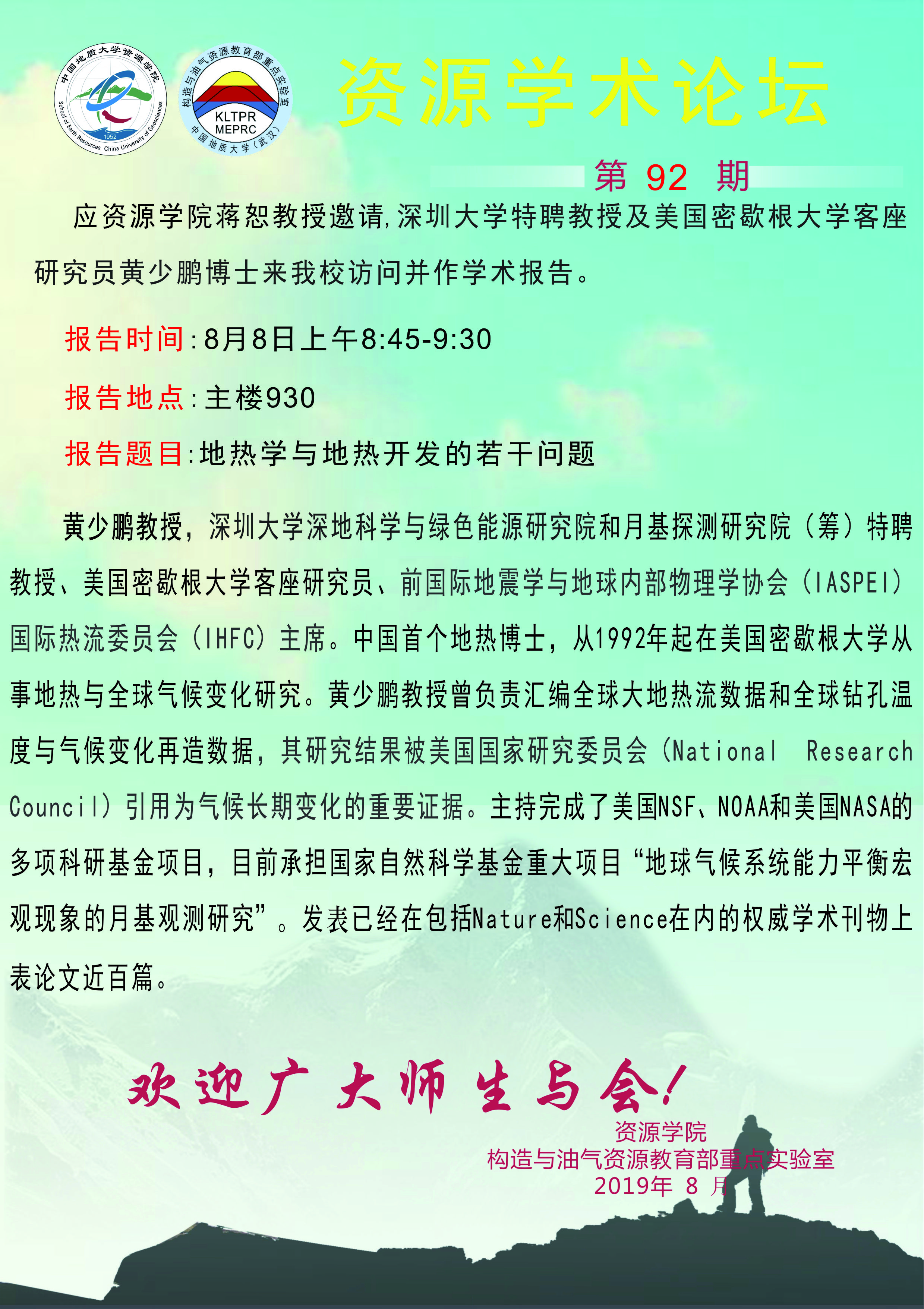 【8月8日】第92期资源学术论坛:黄少鹏学术报告