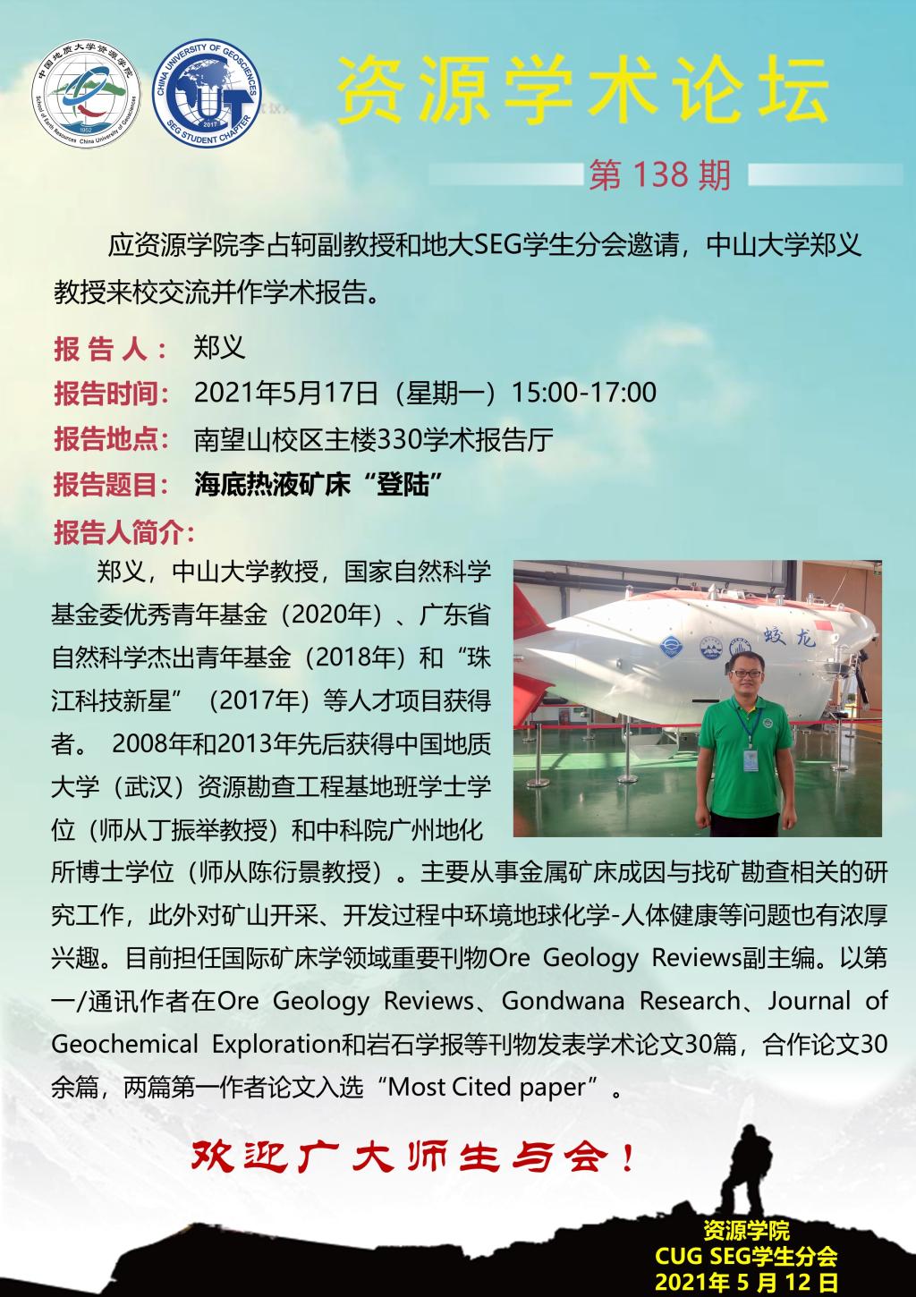 【05月17日】第138期资源学术论坛:郑义学术报告