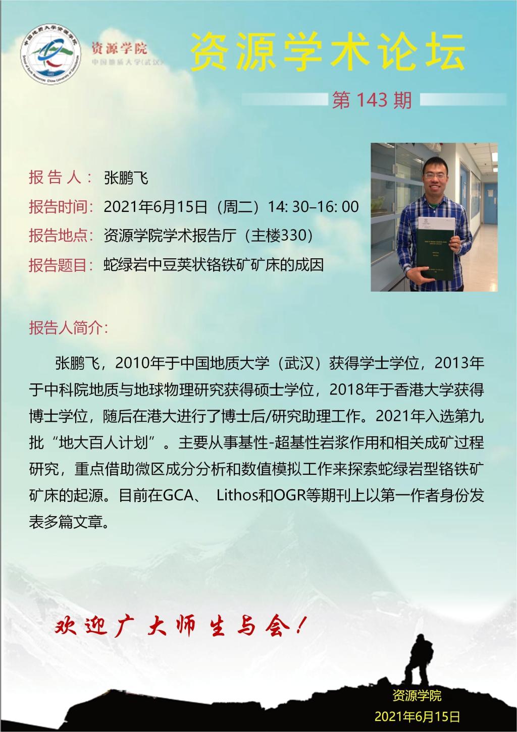 【06月15日】第143期资源学术论坛:张鹏飞学术报告