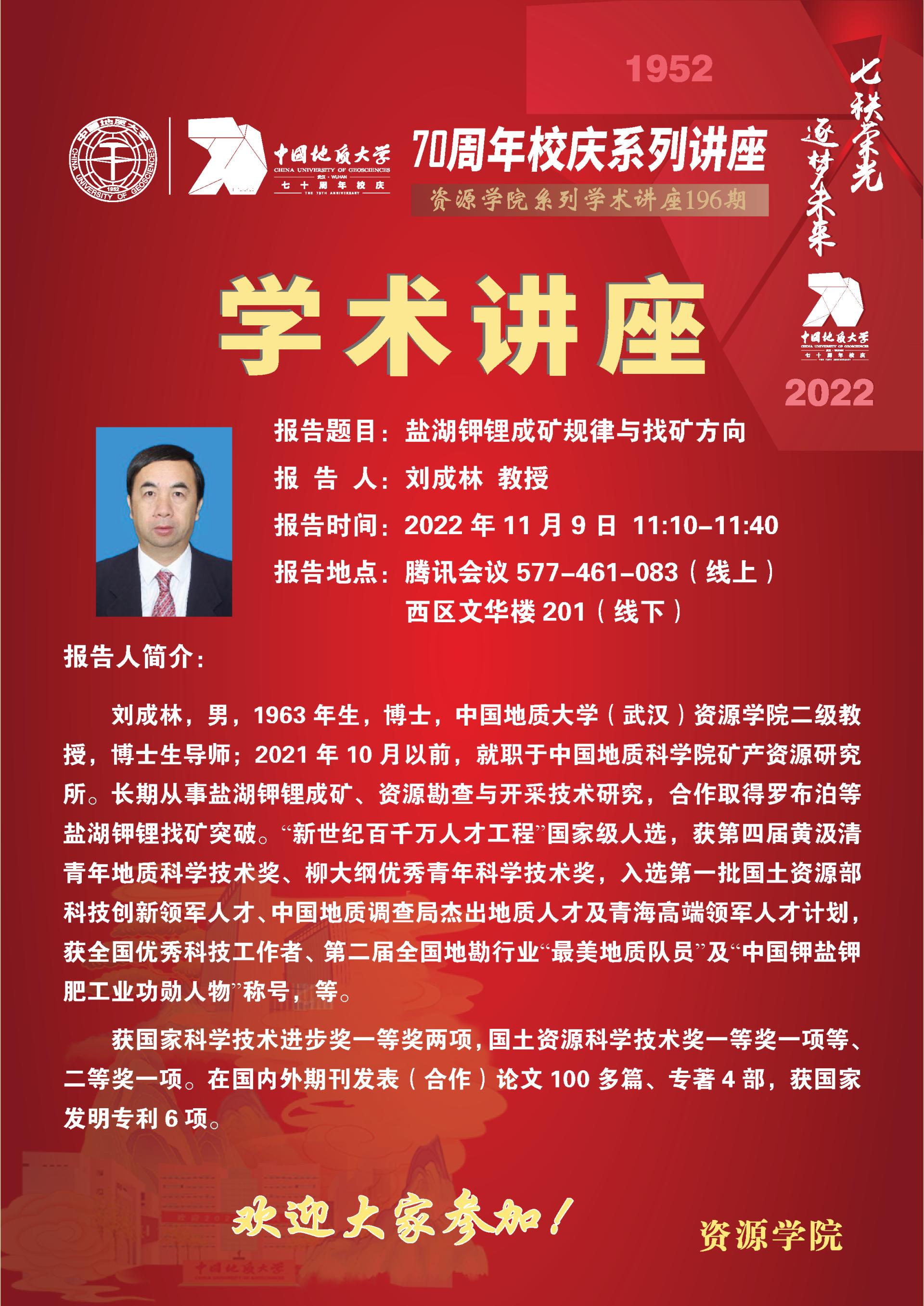 【11月9日】第196期资源学术论坛:刘成林学术报告