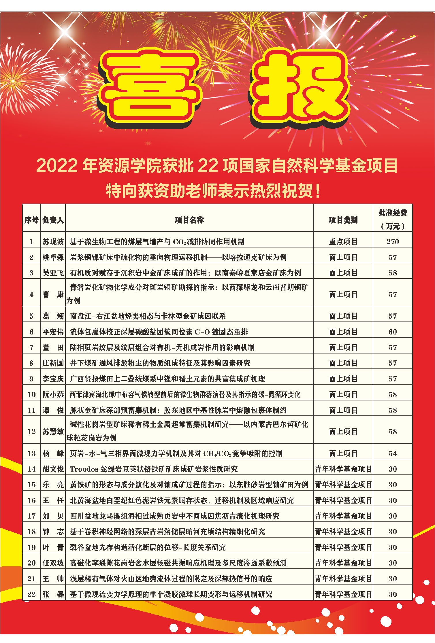 9月8日,国家自然科学基金委员会公布了2022年度集中接收期项目评审结果。公司基金立项在2019、2020、2021年3个大年的情况下,继续保持良好发展态势,共有22个项目获得立项资助,其中,重点项目1项、面上项目12项、青年科学基金项目9项,资助直接经费1228万元。