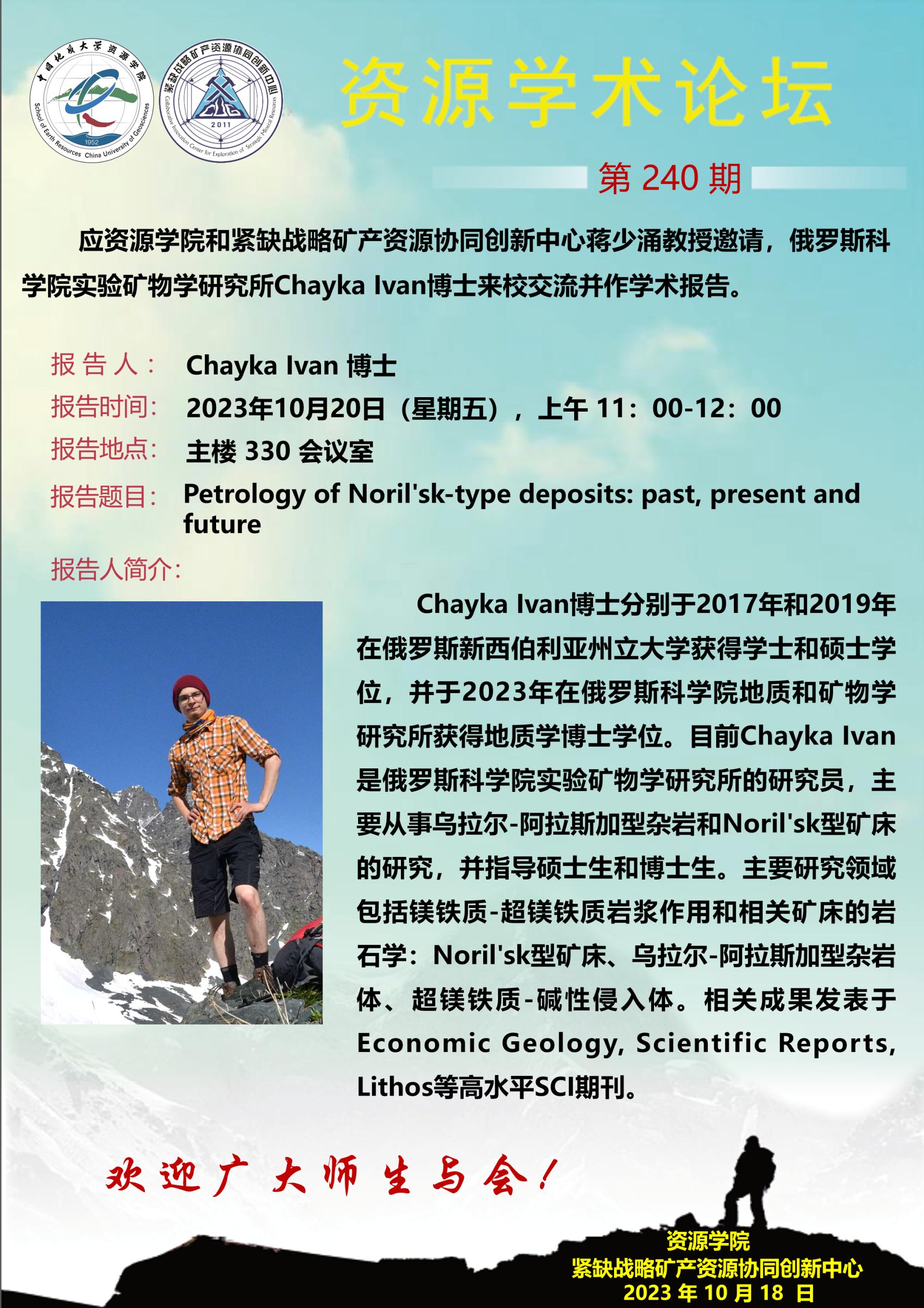 【10月20日】第240期资源学术论坛:Chayka Ivan学术报告