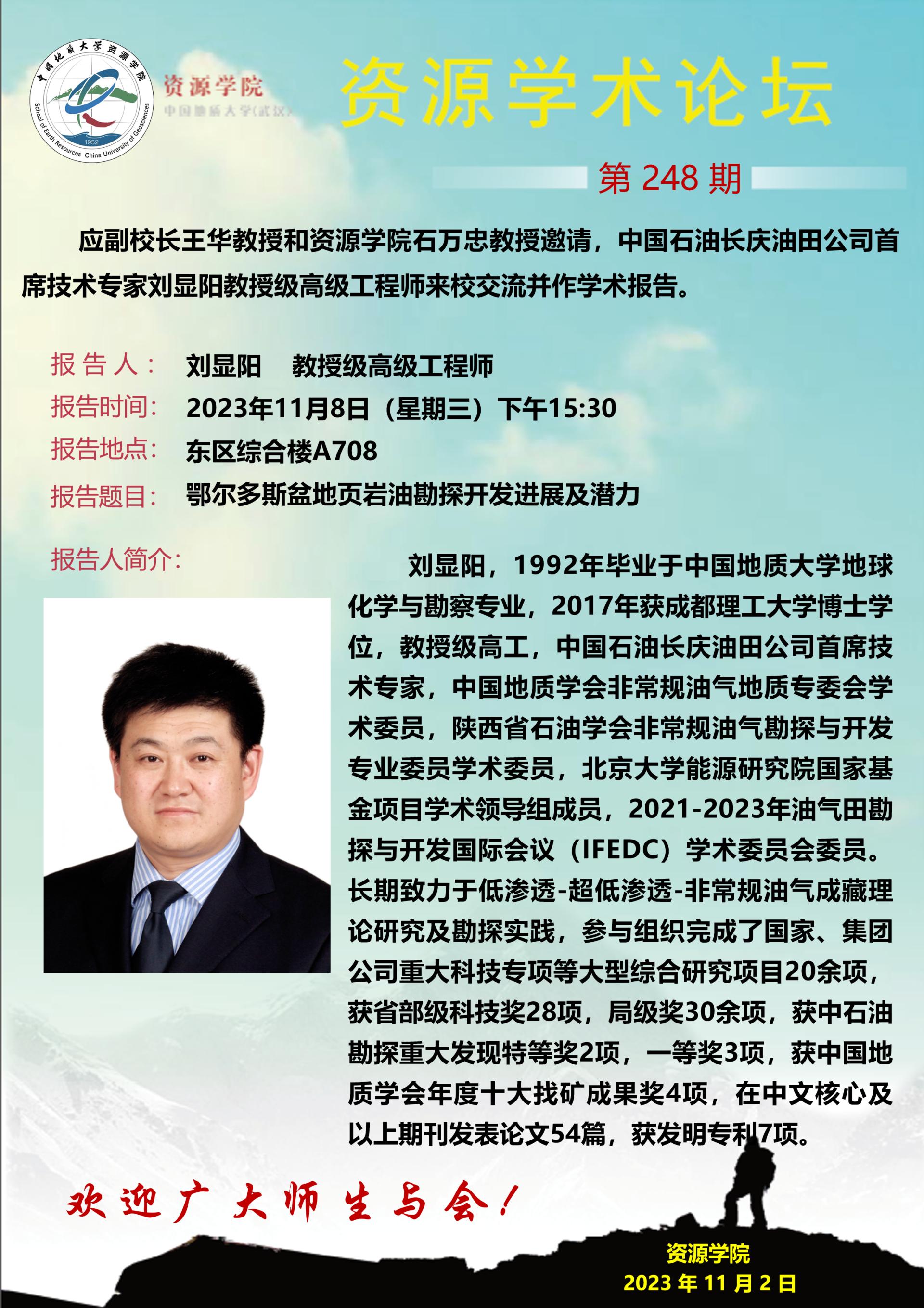【11月8日】第248期资源学术论坛:刘显阳学术报告