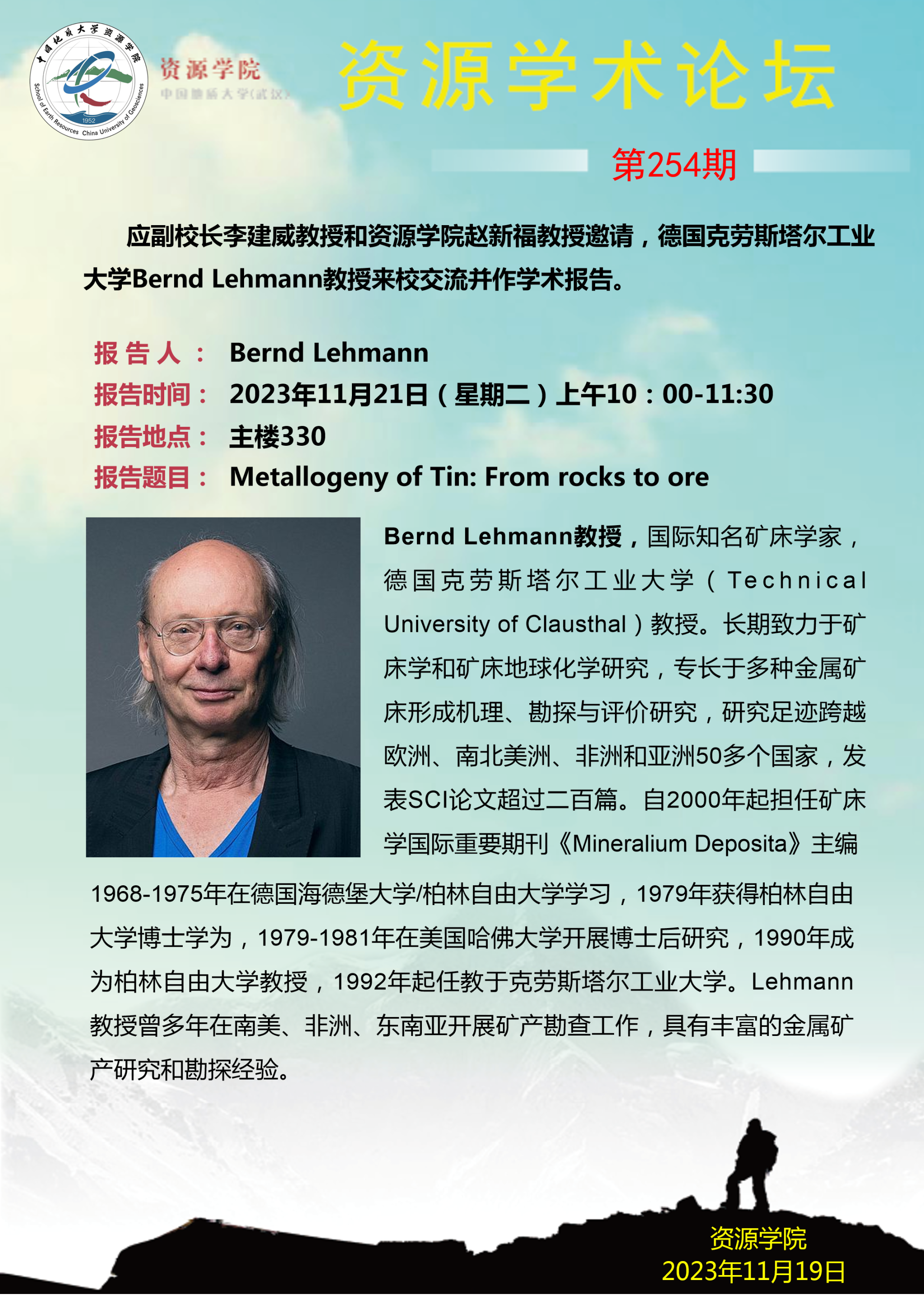 【11月21日】第254期资源学术论坛:Bernd Lehmann学术报告