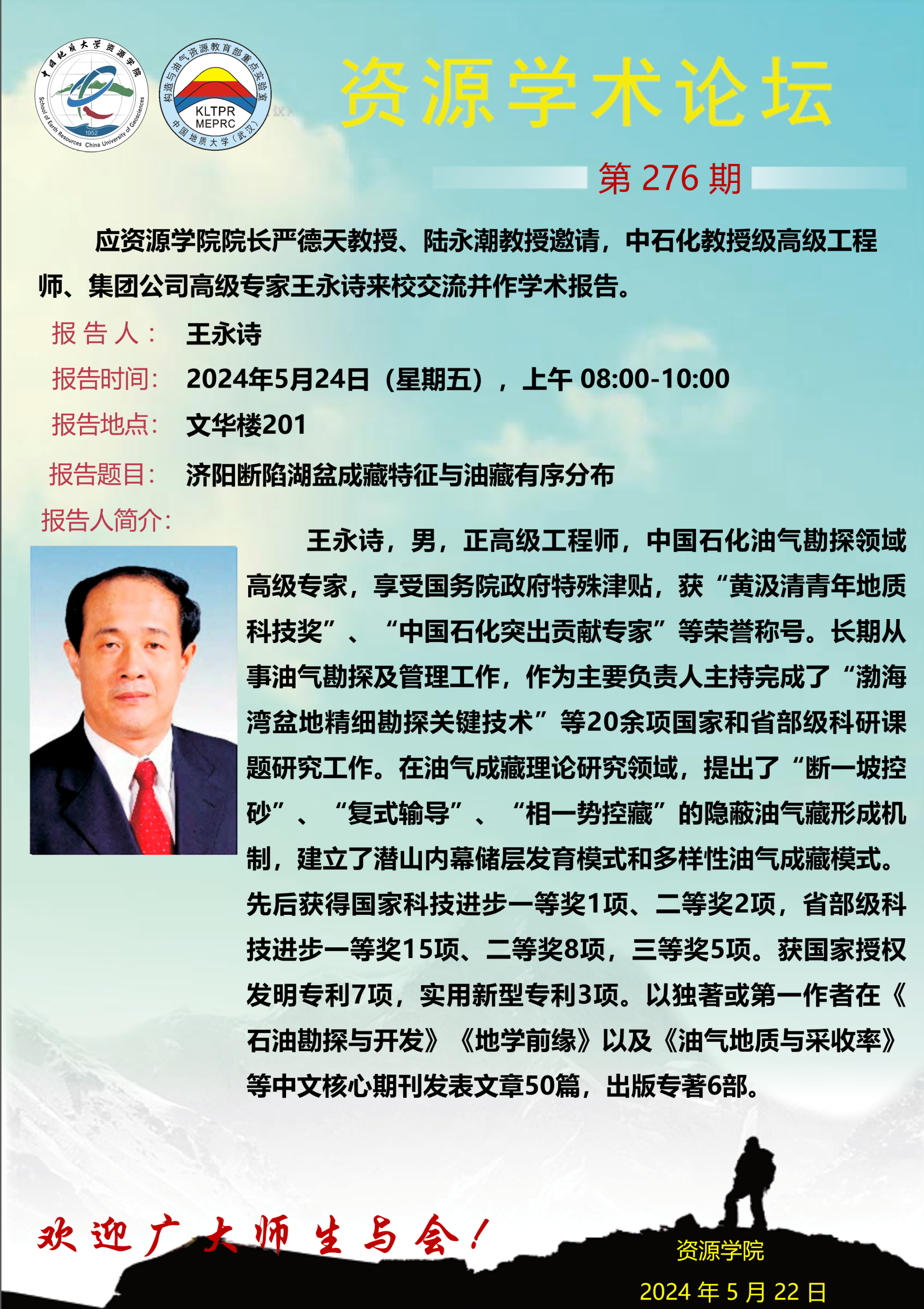 【5月24日】第276期资源学术论坛:王永诗学术报告