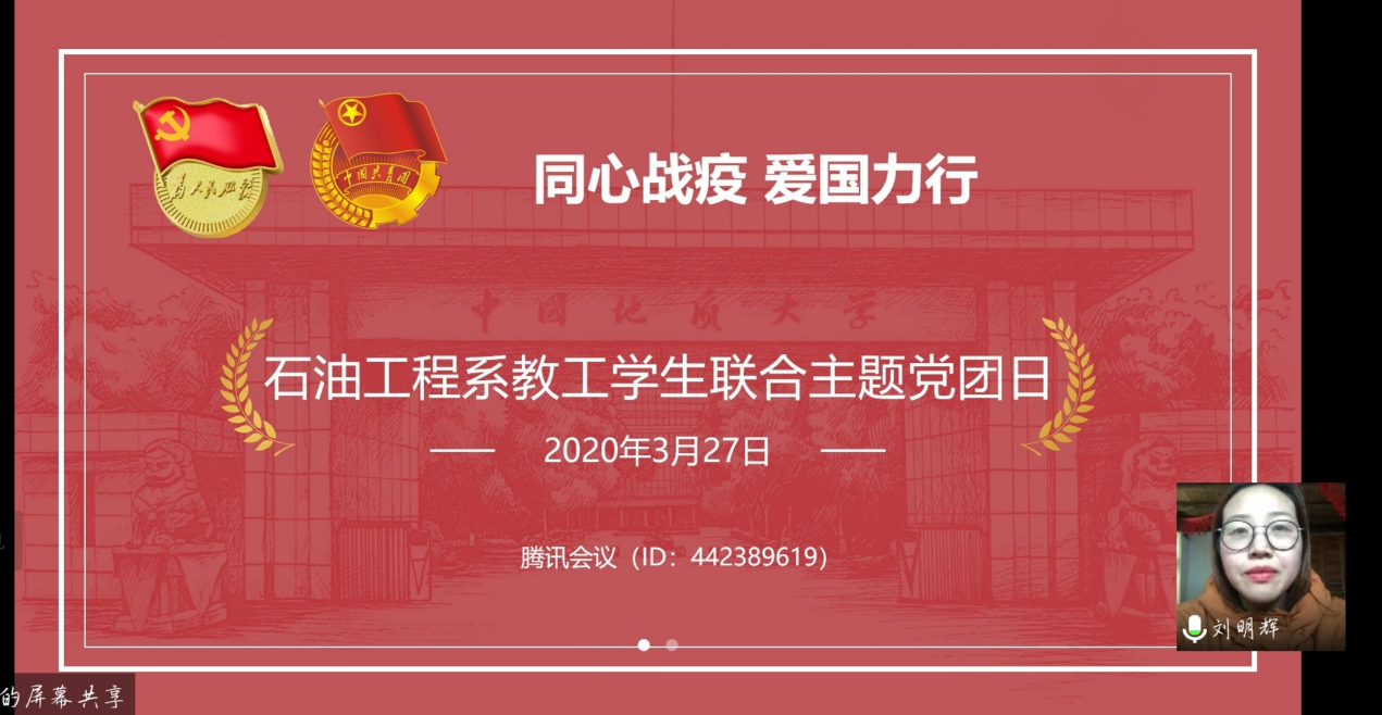(通讯员:雷寒月)2020年32714:00公司石油工程系“同心战疫 爱国力行”主题党团日活动顺利开展参与本次党团日活动的有公司副经理朱红涛教授、石油工程系全体教工以及全院石油工程系大一、大三、大四员工共150余人参会。团委书记刘明辉主持会议。