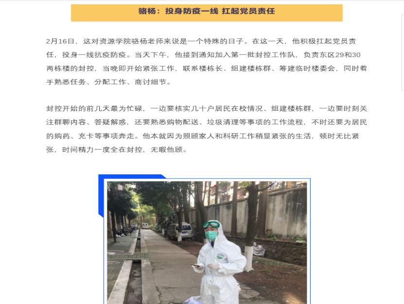 022171班参加社区抗疫志愿活动陈茜林同学道:“我们赞颂勇气,因为我们在最危险的时候挺身而出;我们坚守使命,因为我们在国家需要的时候负重前行;我们牢记责任,因为我们在合适的时间竭尽所能