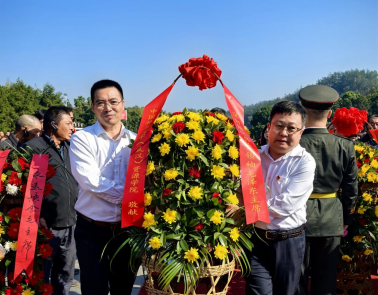 参观学习后,公司党委书记高复阳、经理严德天带领全体成员向毛泽东同志铜像敬献花篮。