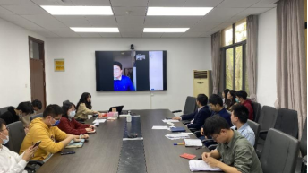 出国出境党员邹耀遥同志在线发言,他结合自身科研经历和海外留学经历,分享了学习党的二十大报告体会,并表达了在海外观看党的二十大开幕时写下的书法作品。