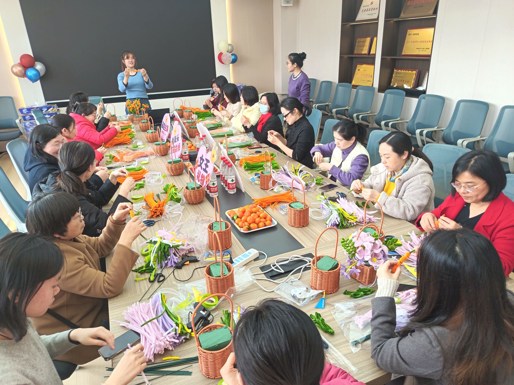 为庆祝“三八”国际劳动妇女节,弘扬中华优秀传统文化,丰富女教职工精神文化生活,3月7日下午,公司工会以“巾帼撷芳承古艺 绒花巧手簪春色”为主题,组织全院女教职工开展非遗手工簪花花篮制作活动,通过传统技艺体验展现女性智慧之美,传递节日祝福。