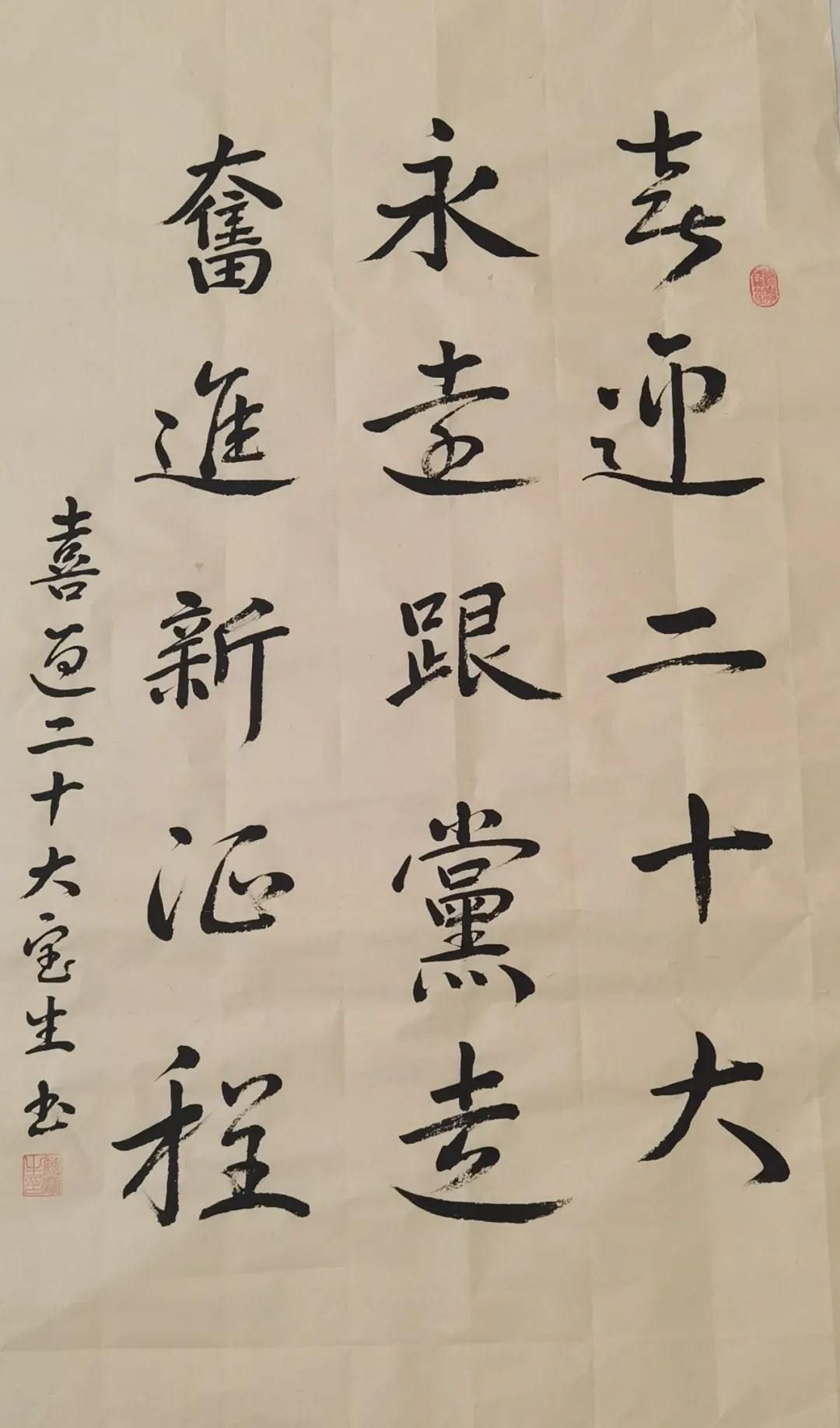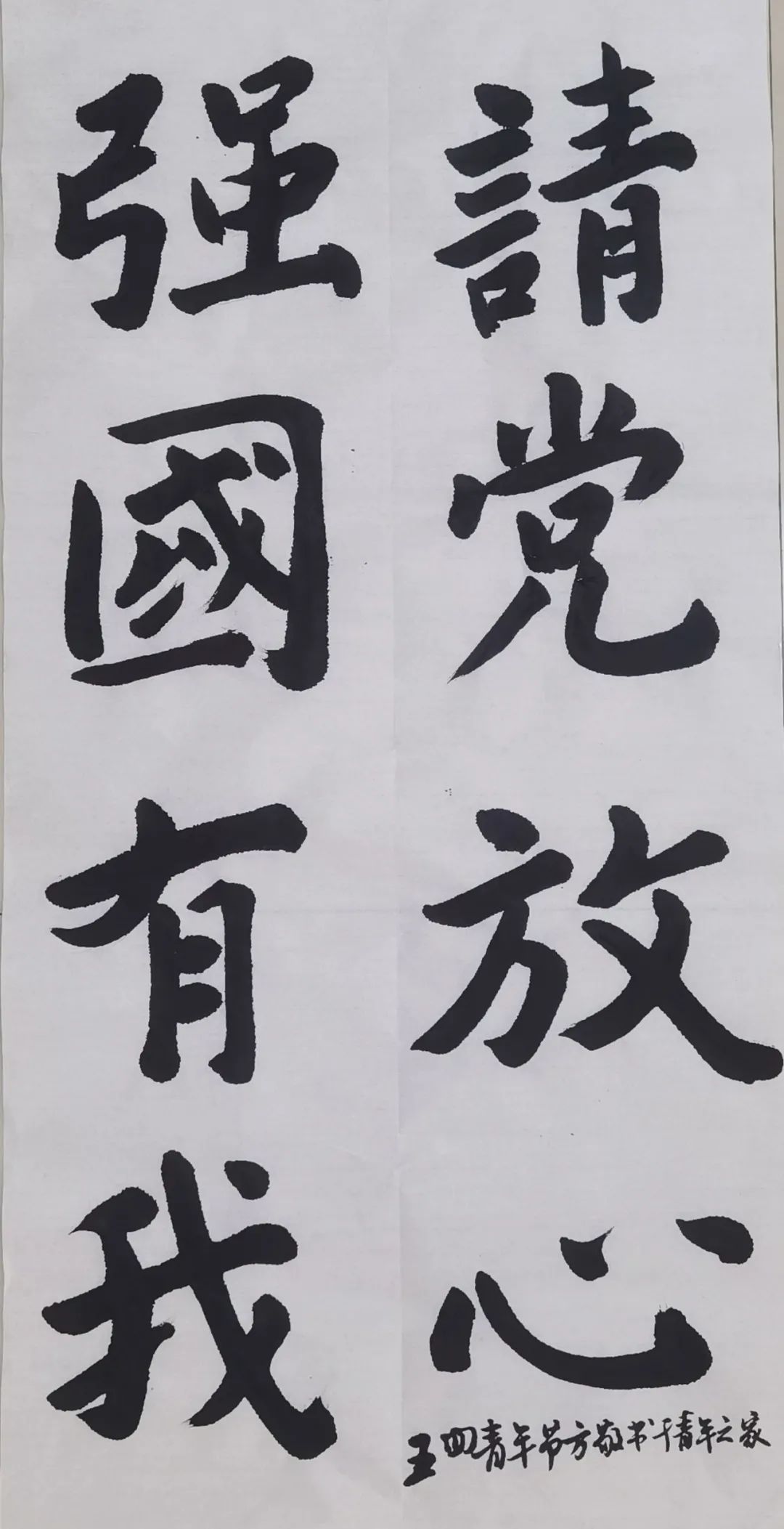 一个人要有足够好的爱国精神。今天是五四青年节,恰好也是建团一百周年纪念日。能以书画表达出对团的祝福,对党和国家美好祝愿感觉很青春。惟愿青年崛起担当,早日参与到国家建设中去。