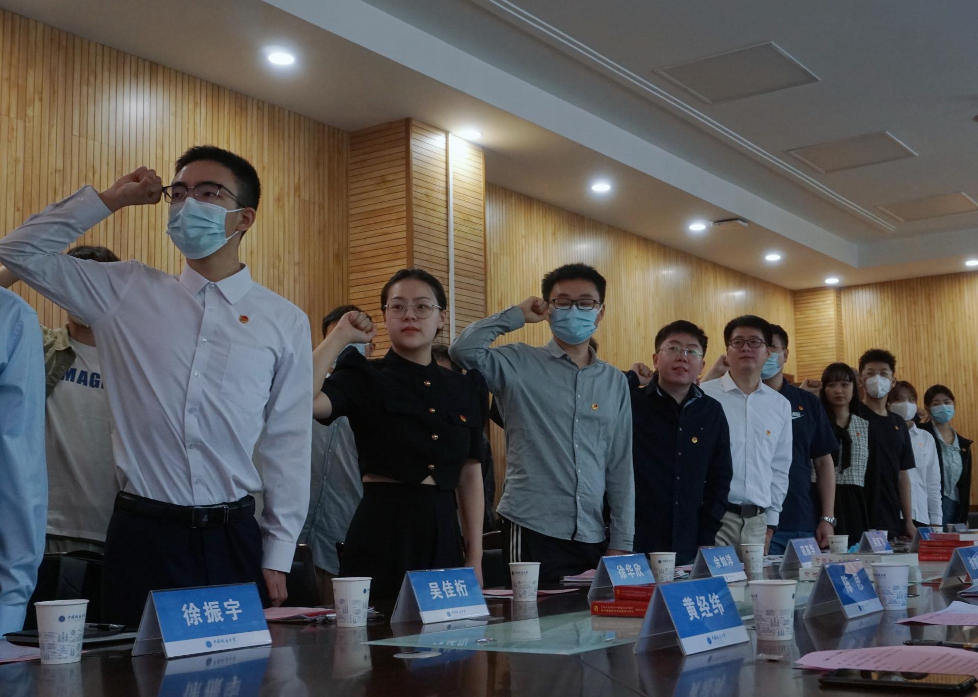 会议在激昂的团歌中拉开序幕,公司团委书记刘明辉带领新入团团员宣誓、老团员重温入团誓词。