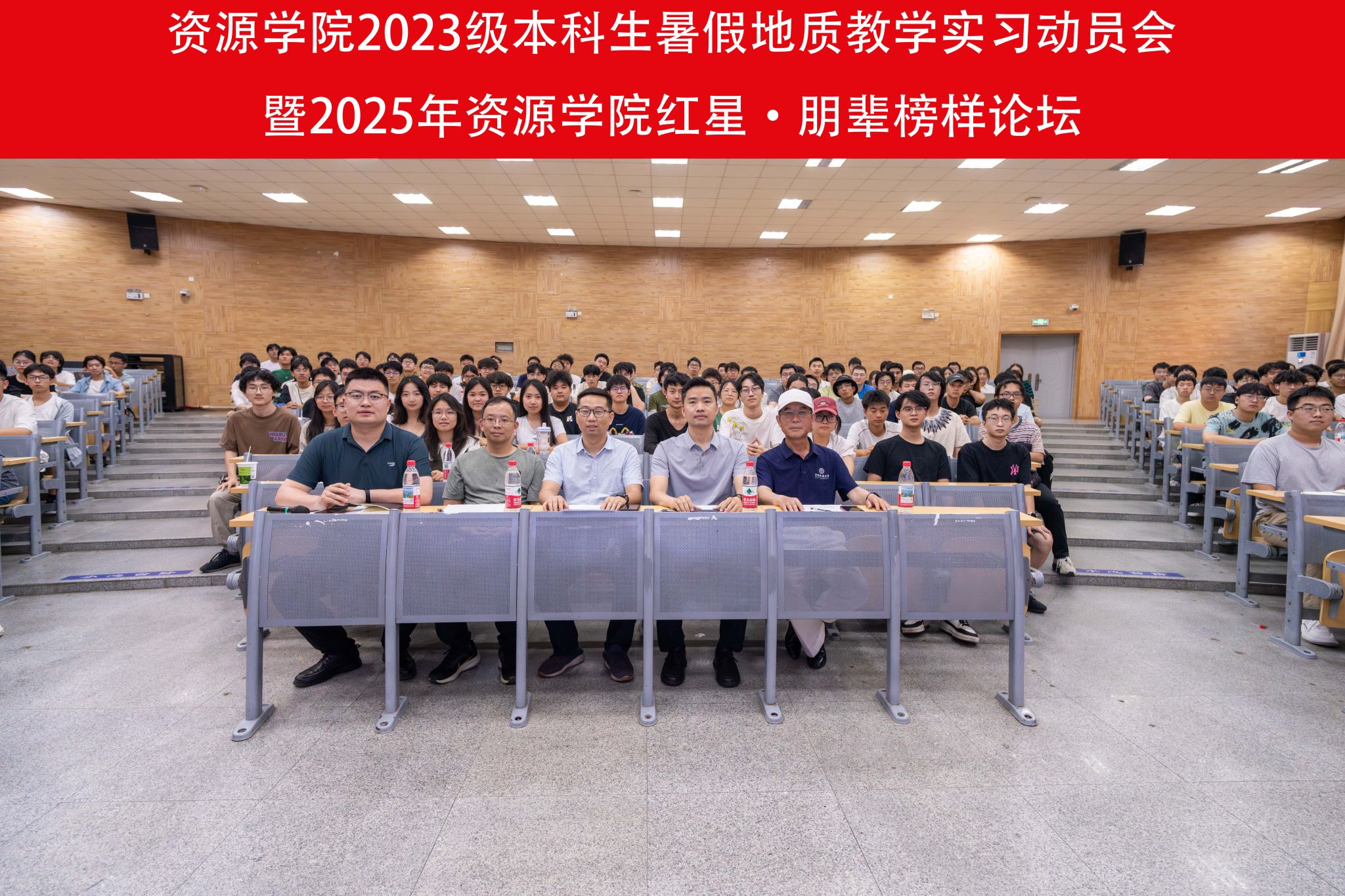 (通讯 席伟琦 彭鑫 摄影 陈思程 范汤豪)6月15日,2023级本科生暑期地质教学实习动员会暨2025年红星·朋辈榜样论坛在教三楼109举行,公司党委副书记谭文伦,副经理李占轲,周口店实习站队长魏启荣,秭归实习站队长李嘉光,辅导员彭鑫,2024届本科毕业生马玮、刘欣、刘子萍,2025届员工会执行主席余慧和2023级全体本科生参加会议。会议由辅导员彭鑫主持。