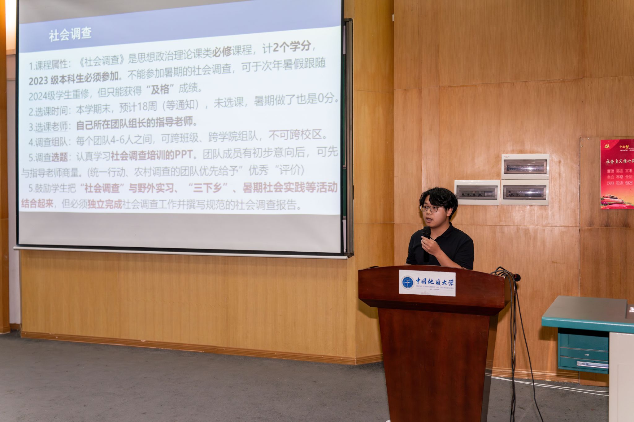 2023级年级工作组组长助理李玉冰以《如何做好社会调查》为题进行培训,帮助员工在暑期做好社会调查相应工作。