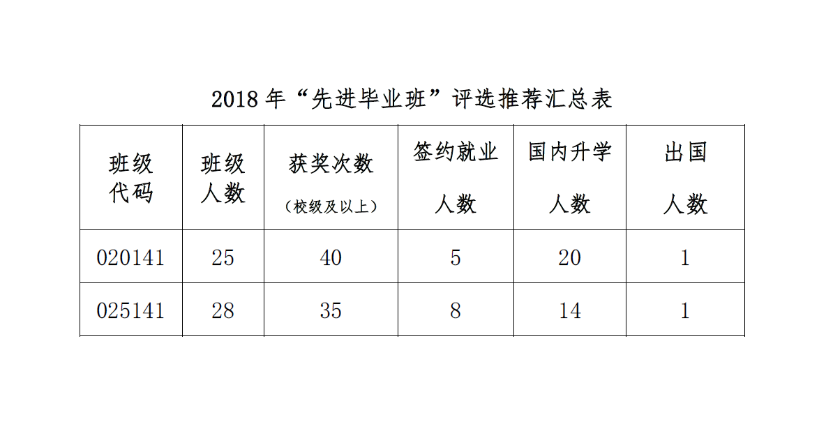 经员工个人申请和公司综合评审,现评选出020141、025141等2个班级为2018年先进毕业班,遴选出藏博等26名同学为2018年优秀毕业生,现将名单公示如下: