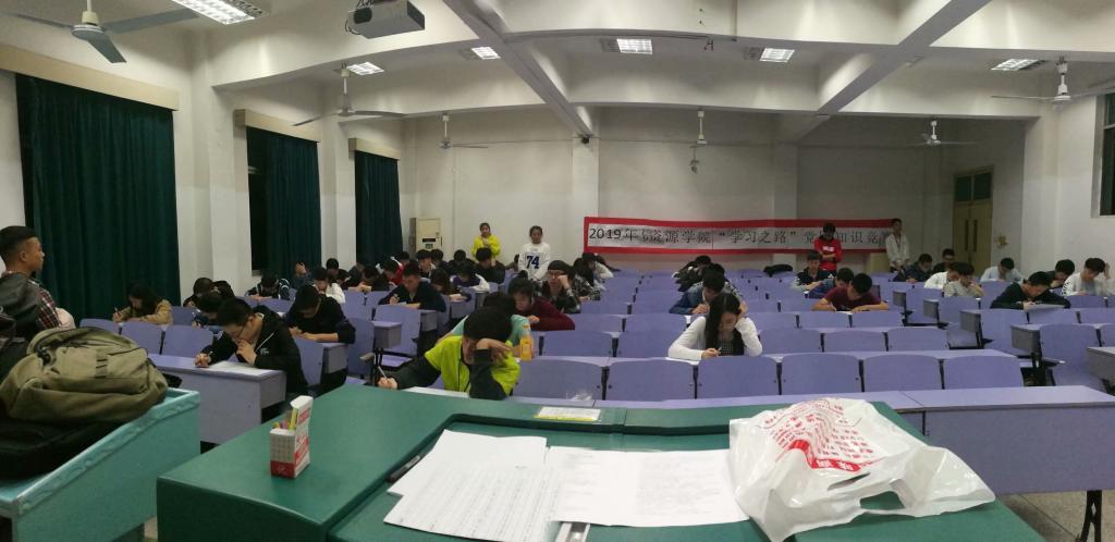 六点半左右,工作人员开始布置考场。参赛的同学们陆陆续续到场,根据座位表就座。本次初赛采用笔试形式开展,竞赛内容主要为党章、党规、党史、系列讲话重要内容以及十九大与两会精神等。