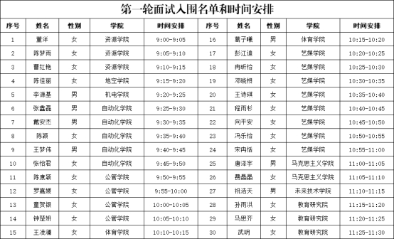面试时间:10月13日(周五)上午9:00;具体面试时间段见上表。