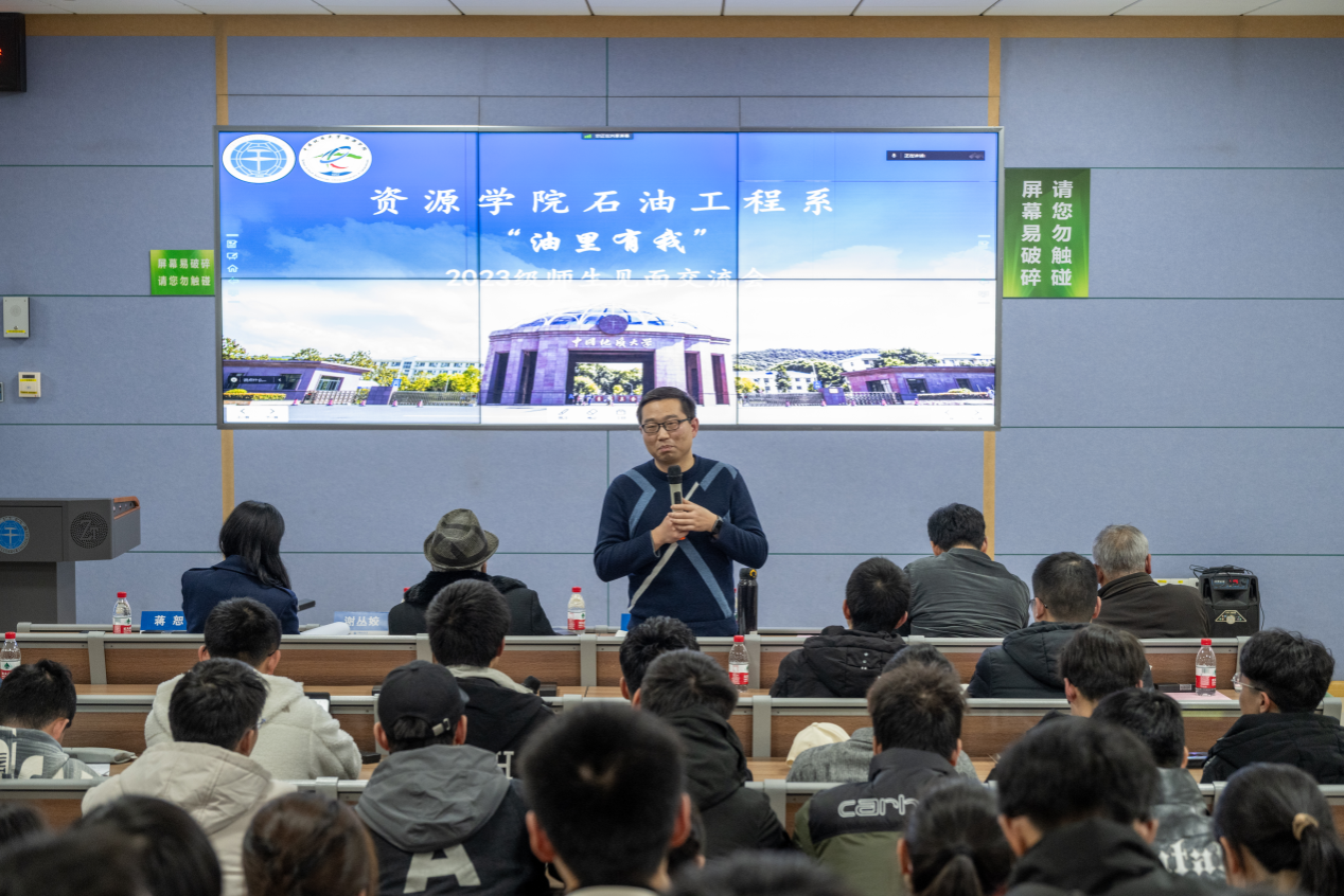 2023年12月27日晚,Beats365唯一官网入口石油工程系在东区综合教学楼C栋0106举办了“油里有我”2023级本科生师生见面会。此次活动旨在进一步增强员工对专业的认知、增进师生的交流与了解,为员工未来学习与科研打下基础。公司教学监督员马立祥,公司党委副书记谭文伦,石油工程系支部书记谢丛姣、系主任蒋恕及顾军、龚斌等石油工程系全体教师参加会议。石油工程系副主任钟志主持交流会。