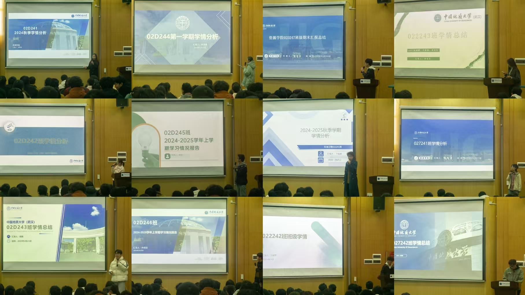 12位班级学习委员从成绩分析、科目成绩比对、现状分析等方面分析了各自班级的学习现状。2024级本科生兼职辅导员鲍涵做《2024级本科生总体学情分析报告》。她从学情总体概况、横纵对比研判、重点课程分析、学情问题分析等方面全面回顾了2024级本科生第一学期的学习情况,并对大一下学期的学习生活提出具体建议。