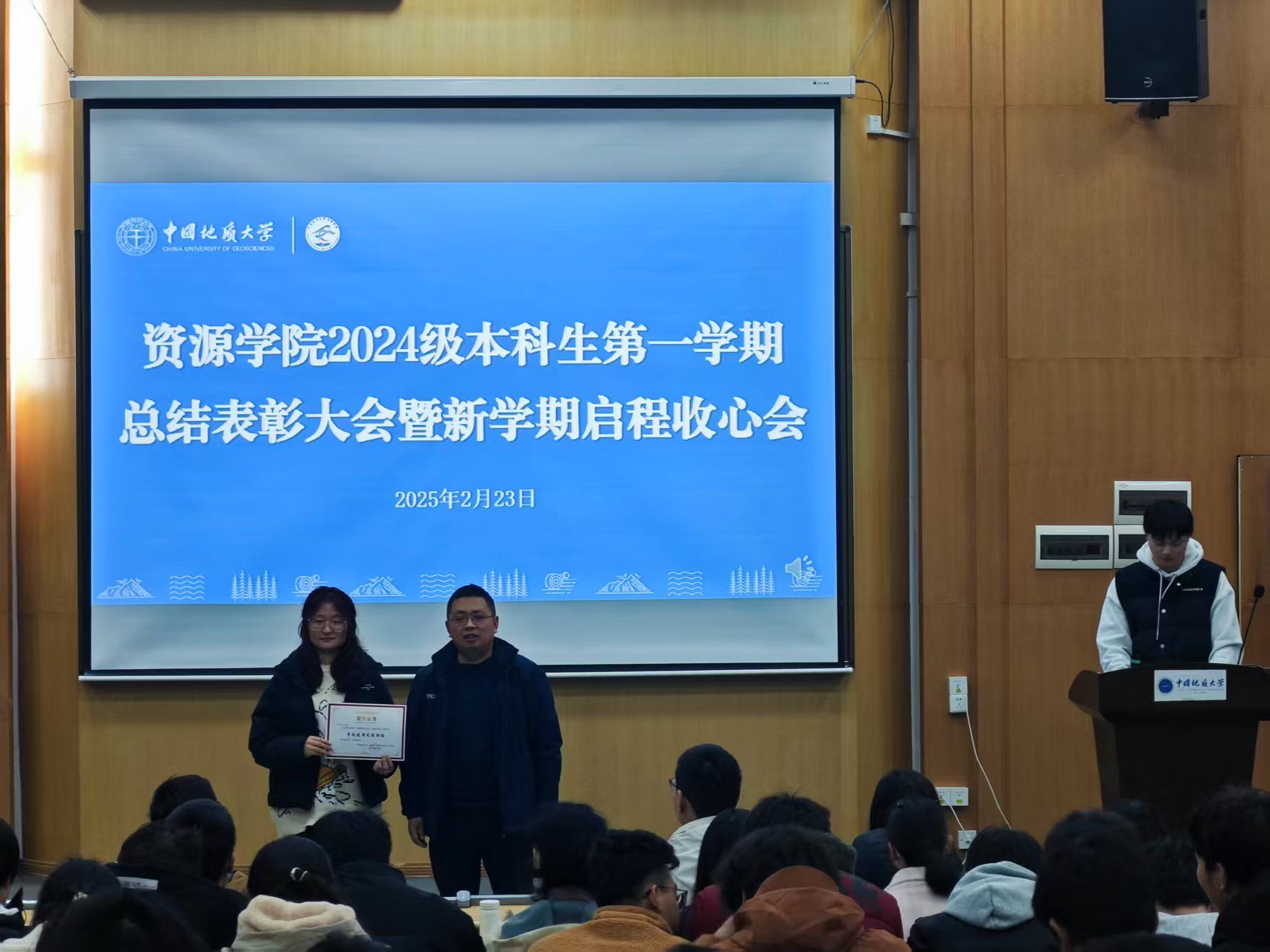 (通讯员 李美玉 摄影 汪佳玉 陆佳玉)2月23日,Beats365唯一官网入口在南望山校区西区教三楼109教室召开2024级本科生第一学期总结表彰大会。公司安全保卫部副部长彭冠军,公司党委副书记谭文伦,安全保卫部法律援助办主任魏景明,班主任代表付乐兵、周红、陈志军,专兼职辅导员,李四光计划成员代表及2024级全体本科生参与会议。会议由2024级本科生辅导员刘睿主持。
