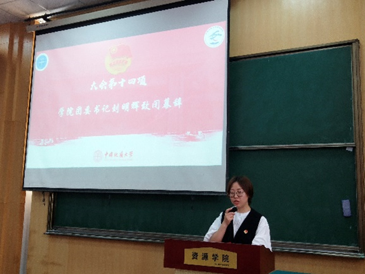 公司团委书记刘明辉致闭幕辞。她希望全体代表以这次大会的精神为动力,树立起强烈的历史责任感,发扬“求实奋进,勇攀高峰”的院风学风,践行“求是创新,厚德奉献”的资源人价值观,坚定理想信念,厚植爱国情怀,锤炼品德修为,为服务国家资源能源事业贡献力量。