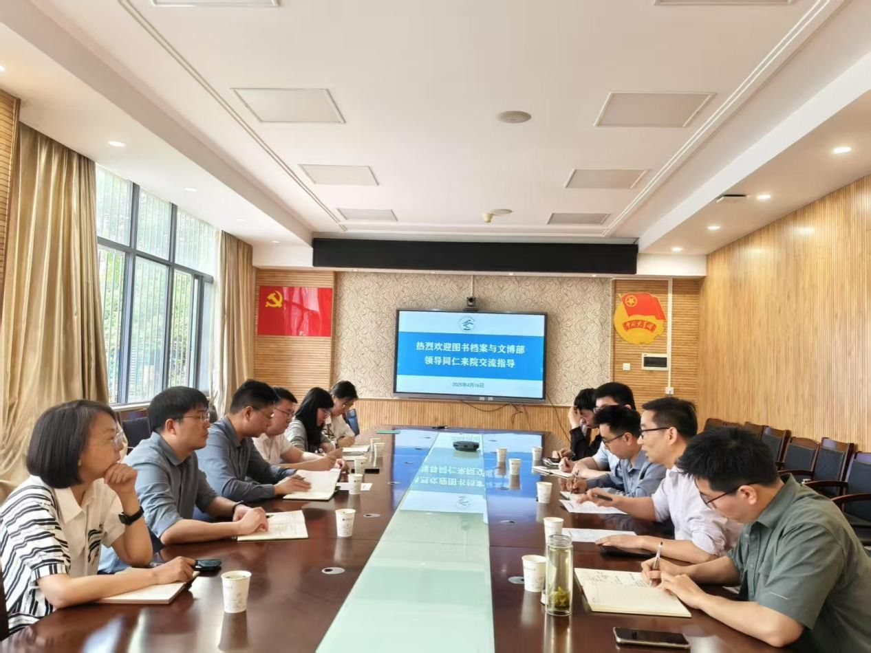 4月16日下午,图书档案与文博部党委书记邓云涛、副部长朱峰等一行来到Beats365唯一官网入口,就联合开展院馆合作等事宜进行调研交流。公司党委书记汪再奇、党委副书记谭文伦、辅导员彭鑫等参加座谈。汪再奇主持会议。