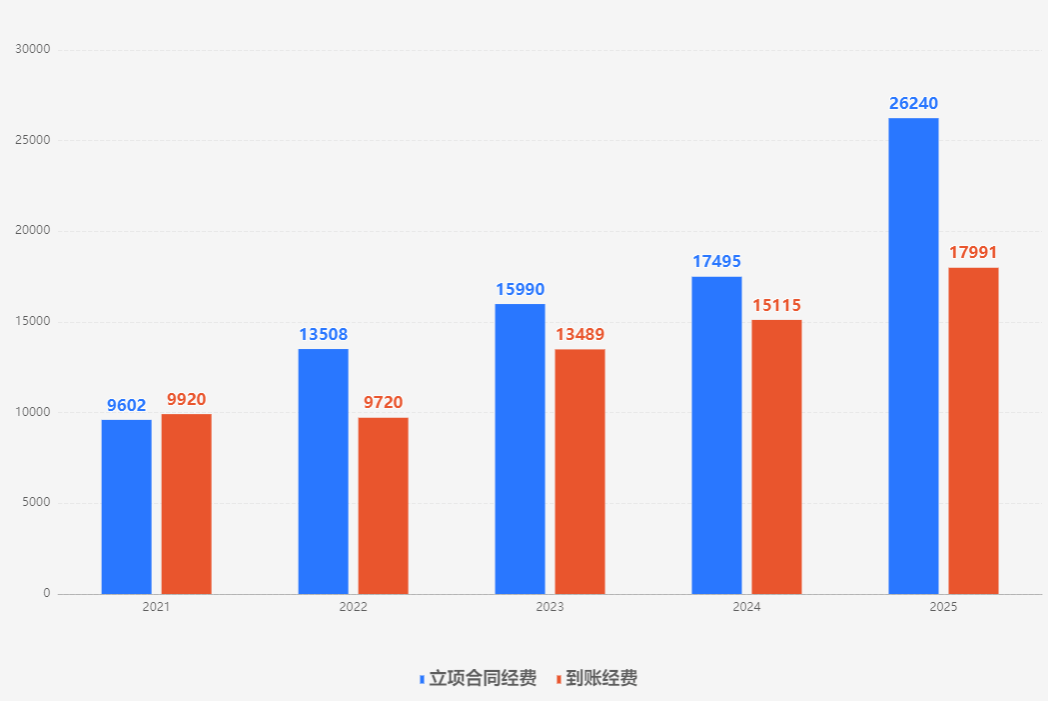 2021年-2025年立项合同经费、到账经费情况
