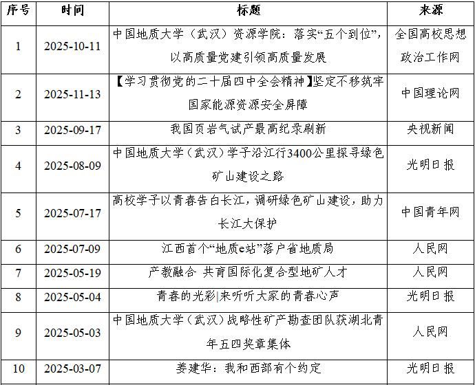 大力弘扬校训精神、摇篮精神、南迁办学精神以及 “求实进取、勇攀高峰”的院风学风。实施教师育人工作量认定,量化岗位育人职责、细化岗位责任,以绩效分配改革牵引育人合力汇聚。发挥榜样标杆的示范引领作用,凝聚师生干事同力的强大力量,在全院形成奋发向上的干事创业氛围。人民网、光明网、中国自然资源报、中国教育报、中国青年报、中国黄金报、湖北日报、长江日报等国内主流媒体报道公司事业发展和人才培养40余次。