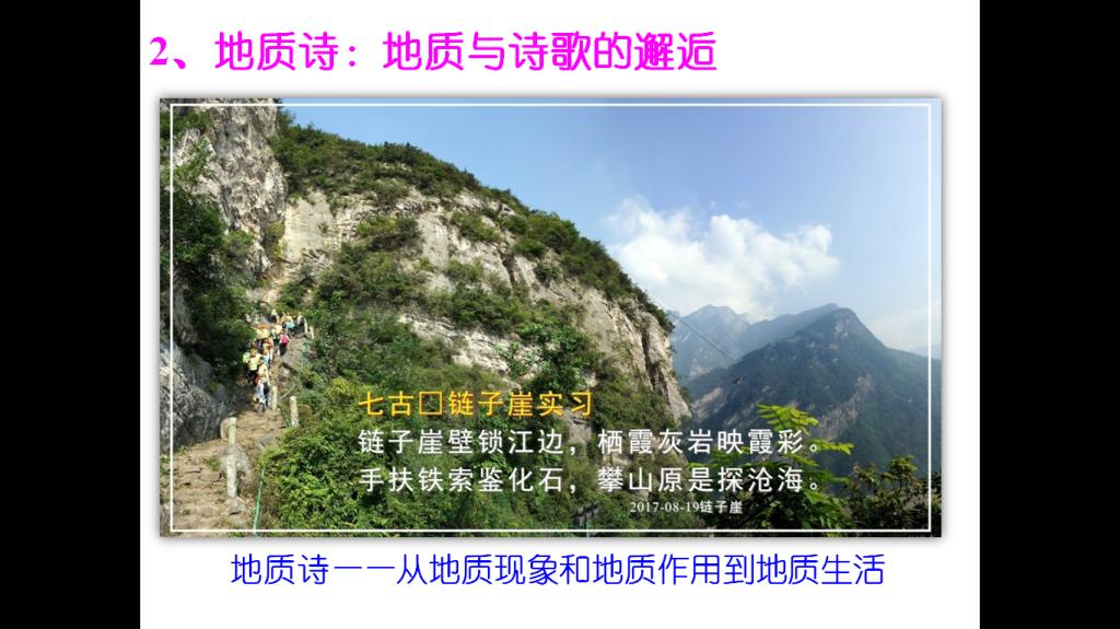 三峡美丽的自然风光与人文景观、三峡大坝雄伟的身姿、三峡地区奇异的地质现象,牢牢吸引了同学们的兴趣,也激发了同学们的热情。同学们将以诗画的形式记录他们的实习历程。8月19日晚,刘晓峰教授开始了“秭归资源讲坛”的第一讲,题目为 “秭归—地质与诗歌的邂逅”。刘老师以自己创作的地质诗为例,介绍了地质诗的写作技巧,点燃了同学们的创作欲望。地质诗不仅有助于培养员工们探索地球科学问题的兴趣,激发他们的想象力和创造力,而且有助于培养同学们以苦为乐的浪漫主义和乐观主义情怀。