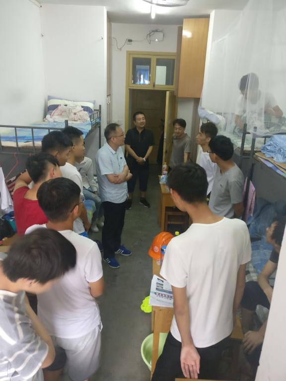 李宇凯一行到达实习站后,首先到员工宿舍同员工们进行交流。李宇凯详细了解了员工到站实习期间学习、生活等各方面的情况。结合自己当年的实习生活,对同学们吃苦耐劳、团队协作的精神给予肯定,鼓励大家要继承和发扬校训精神,树立坚定的地质事业观。最后他叮咛同学们外出时要提高安全防范意识,做好防暑工作。