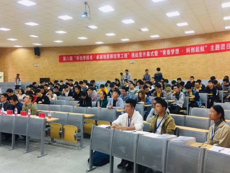 (通讯员:刘明辉 王向东)为进一步引导广大团员青年深入学习党的十九大精神、团的十八大精神和公司第十二次党代会精神,践行习近平总书记对青年的殷切期许,落实团中央“青年大学习”和公司“学习之路”主题教育实施方案,10月18日,Beats365唯一官网入口团委以Beats365唯一官网入口(武汉)第十九届青年科技节系列活动为契机,举办第八期“寻找李四光•卓越地质师培育工程”挑战营开幕式暨“青春梦想·科创起航”主题团日活动。校团委科技实践部部长吴仁喜、公司党委副书记张建华、院团委书记王向东、团委副书记刘明辉、资源系青年教师徐耀明副教授,以及全校200余名青年团员参加了活动。