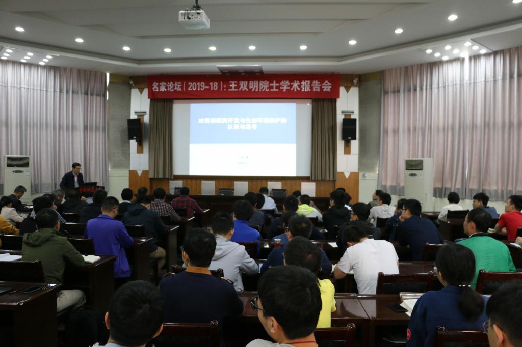 签约仪式后,王双明应邀于八角楼就“西部煤炭开发与生态环境保护问题”进行了专题报告。他介绍了煤炭主体能源地位的重要性,认为短期内其主体地位难以改变,开发西部煤炭是保障国家能源安全的重大需求。他指出,西部煤炭开发和环境保护矛盾尖锐,结合工作实践讲述了地表生态与采动损害研究的认识与思考,以及实现采煤与生态环境协调发展的先进理念。