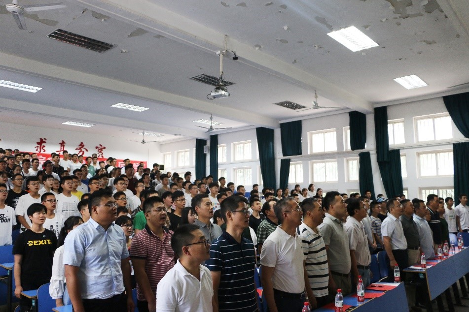 最后,全体师生齐唱《勘探队员之歌》,在高亢激昂的歌声中,2019级新生开学典礼顺利结束。