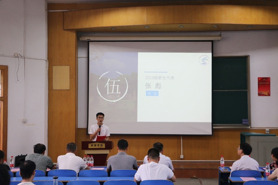 2019级研究生新生代表张彪倡议大家坚守本源初心、勇攀科学高峰、铭记时代责任,在地大,在资源,扬帆起航。