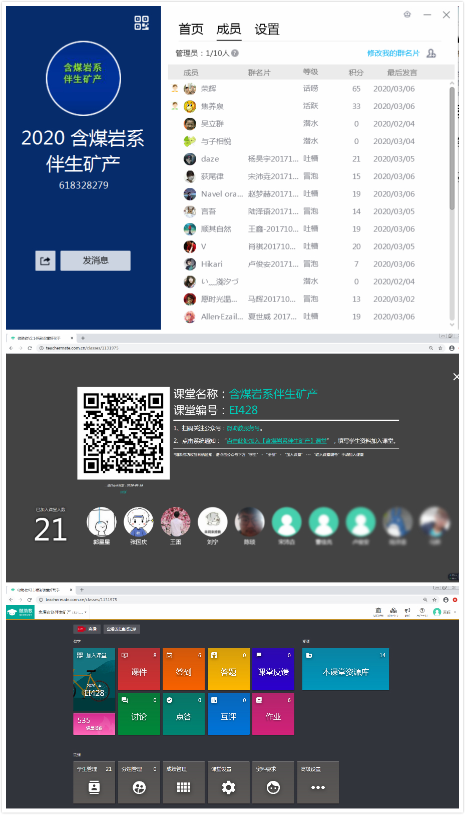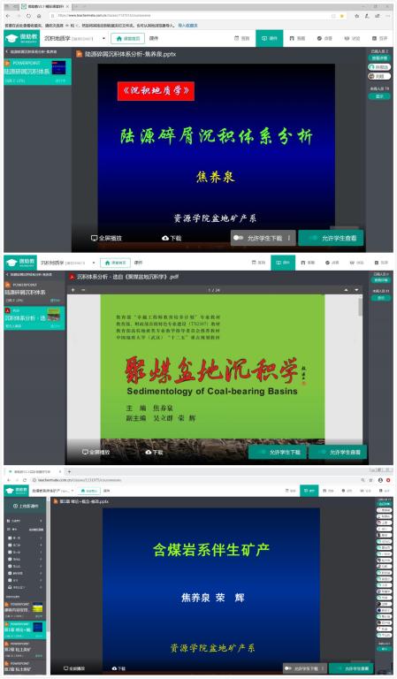 教学团队经过充分的远程酝酿和讨论,及时调整和制定了《含煤岩系伴生矿产》(本科生课程)、《沉积地质学》(研究生课程)以及《应用沉积学》(研究生课程)三门课程的全新线上教学方案,而另外两门本科生课程——《含煤岩系岩芯编录与相分析》(课程设计)和《地球科学概论》(500人上课),由于受限于实验室场地和上课人数众多等因素,决定暂停,待疫情结束后再根据公司安排执行。