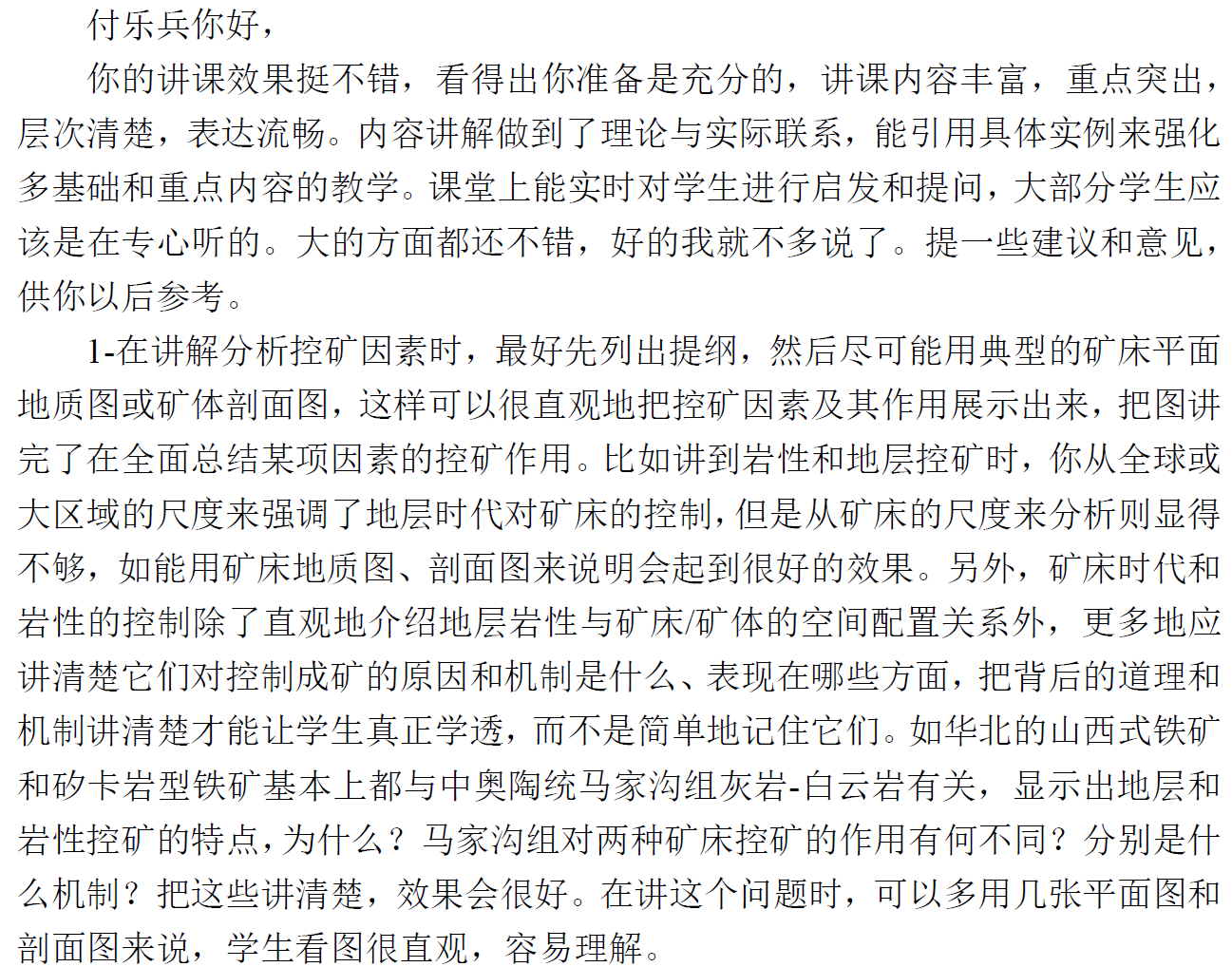 李经理听课后给任课教师反馈意见截图