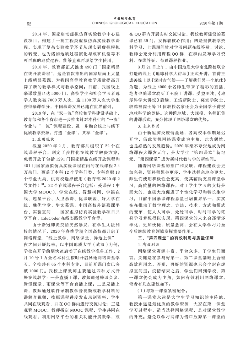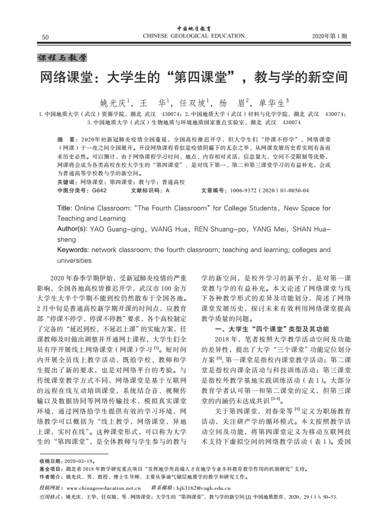 编者按:当前,新冠肺炎疫情蔓延势头得到有效遏制,防控工作取得阶段性成效,为深入贯彻落实习近平总书记关于统筹推进疫情防控和经济社会发展的系列重要讲话精神,在公司统一部署下,Beats365唯一官网入口全体教师克服重重困难,创新运用线上教学新形式,积极总结教学经验与成果。《线上教学进行时》第十期,让我们一同了解姚光庆,王华,任双坡等五位教师发表在《中国地质教育》期刊上的文章《网络课堂:老员工的“第四课堂”,教与学的新空间》。