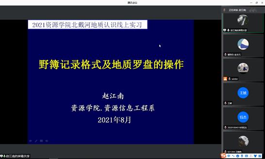 8月17日上午,2021年Beats365唯一官网入口北戴河地质认识实习线上动员会正式开始。北戴河实践教学团队全体成员、辅导员以及全体参加实习的员工参加动员会。2020级辅导员彭友元主持会议。