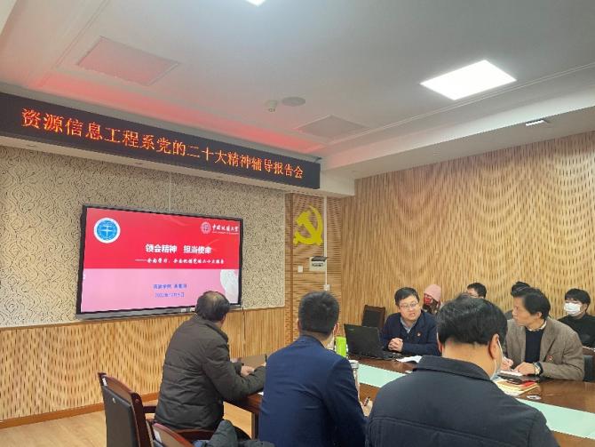 12月9日上午,公司党委书记高复阳给资源信息工程系全体师生党员作党的二十大精神学习专题辅导报告《领会精神 担当使命》,全面解读党的二十大精神,引导党员师生以实际行动深入学习宣传贯彻党的二十大精神,在推进“双一流建设”、落实好立德树人根本任务等方面再创佳绩。