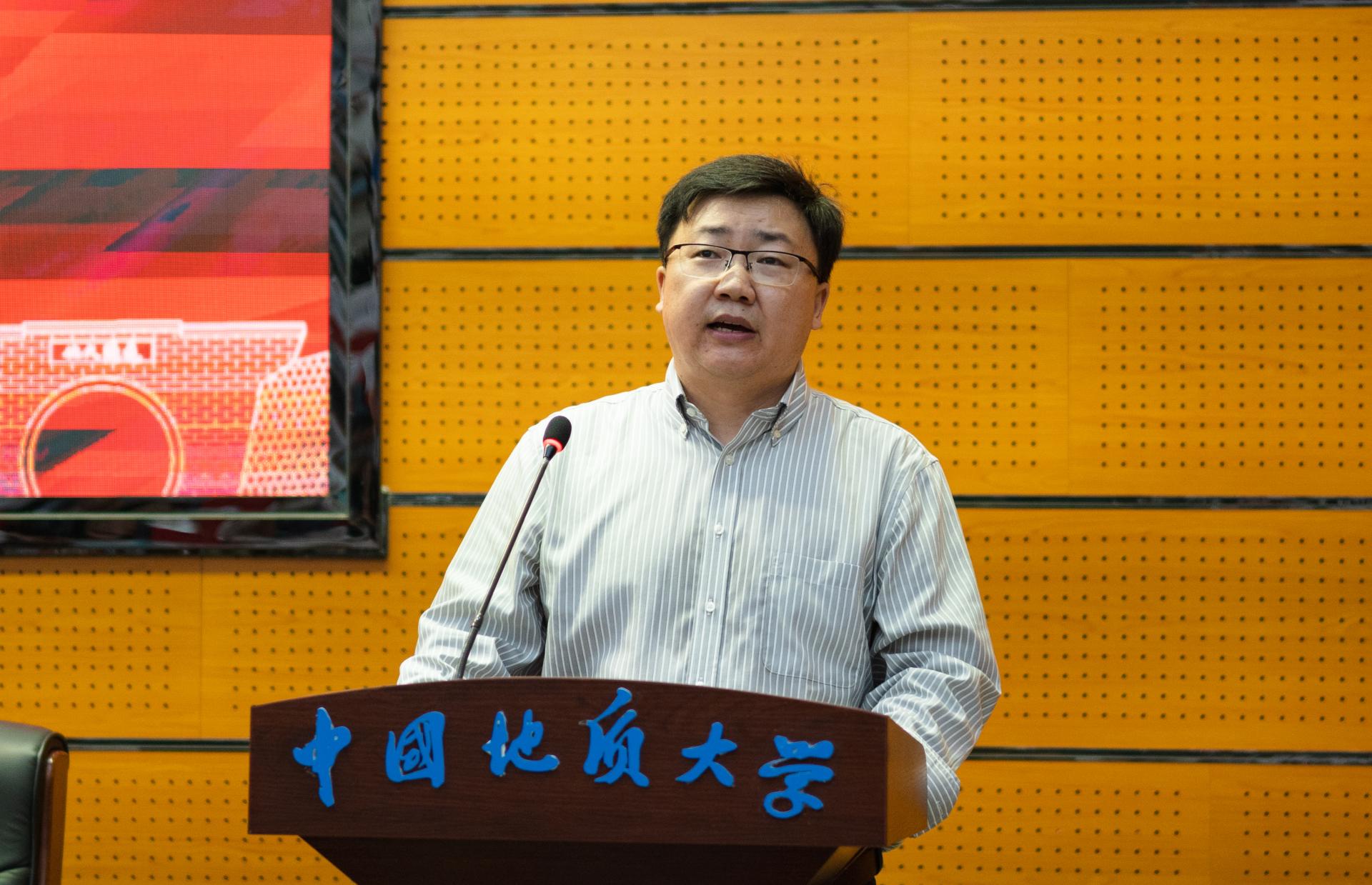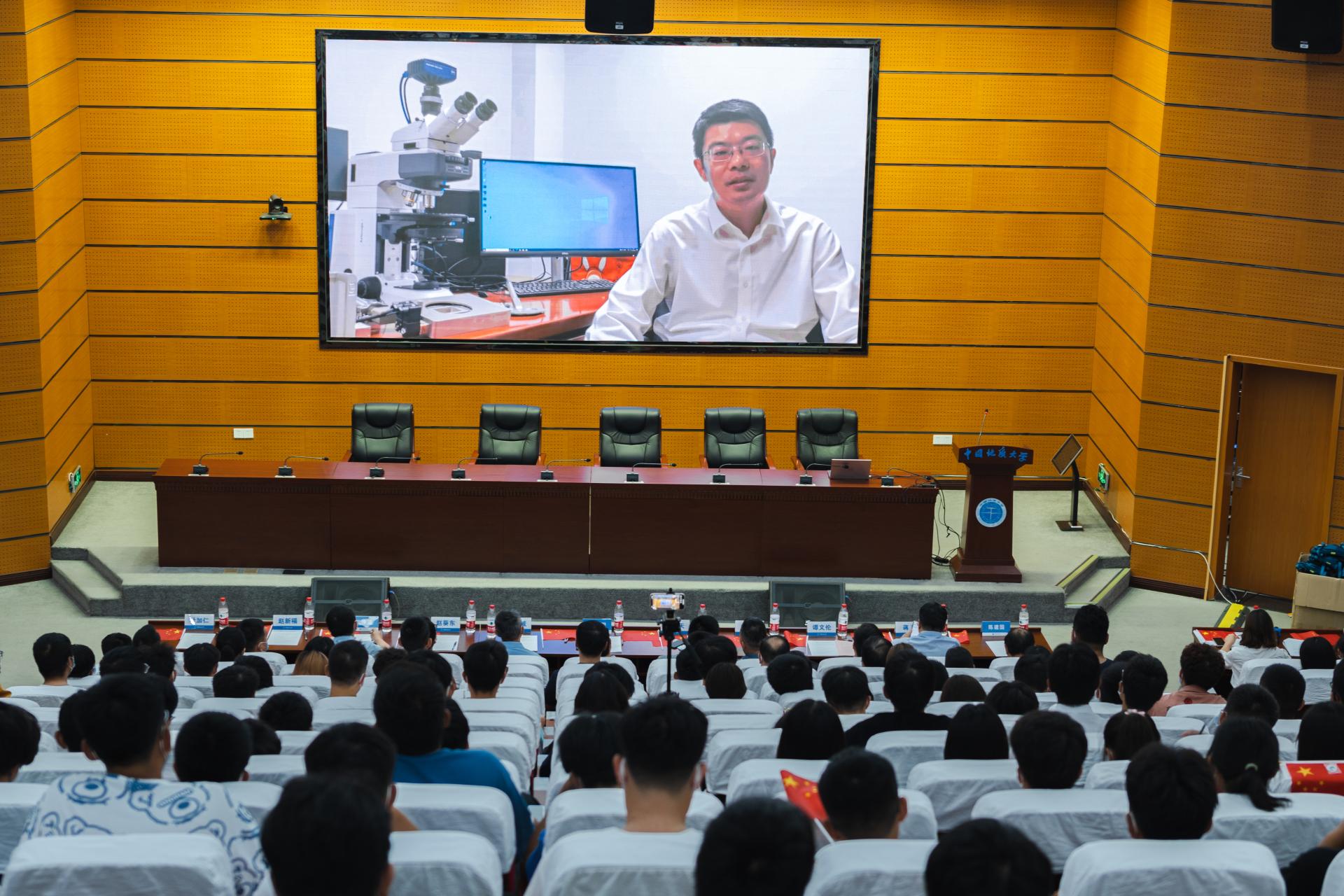 资源勘查工程专业2004届员工、中石油勘探开发研究院致密油研究所副所长、国家“万人计划”入选者杨智教授通过线上方式为同学们送上祝福。他深情回忆了自己在地大9年的求学时光,勉励同学们珍惜求学时光,感恩师长好友;学习专业知识,拓展综合素质;脚踏实地,仰望星空。希望同学们“干”字当头、“实”字托底、事不避难、力戒浮华,做求实奋进的新时代资源人。