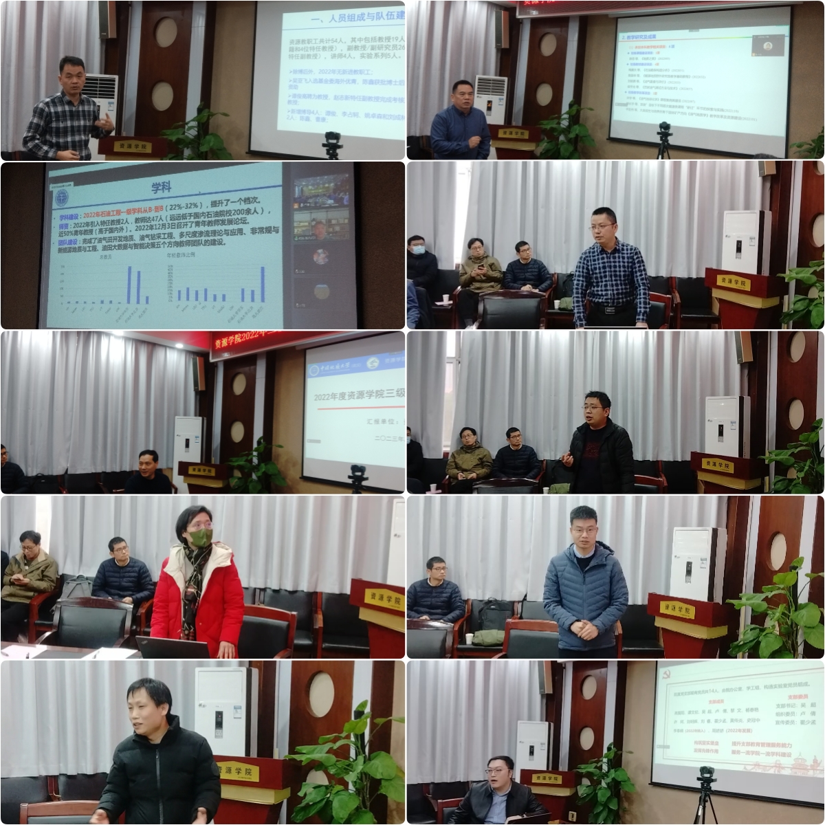 会上,资源科学与工程系、石油地质系、石油工程系、盆地矿产系和资源信息工程系党政负责人分别围绕党建工作亮点特色、人才培养与公司产品、团队队伍建设、学科发展与规划、科技创新与平台建设、成果转化与社会服务、国际交流与合作等方面工作介绍了本单位的基本思路、主要举措、重要进展、工作亮点,并认真梳理了存在的困难和问题、深刻检视了工作中的短板不足,深入交流了好的经验和作法,共同研讨了2023年工作思路举措和主要任务。