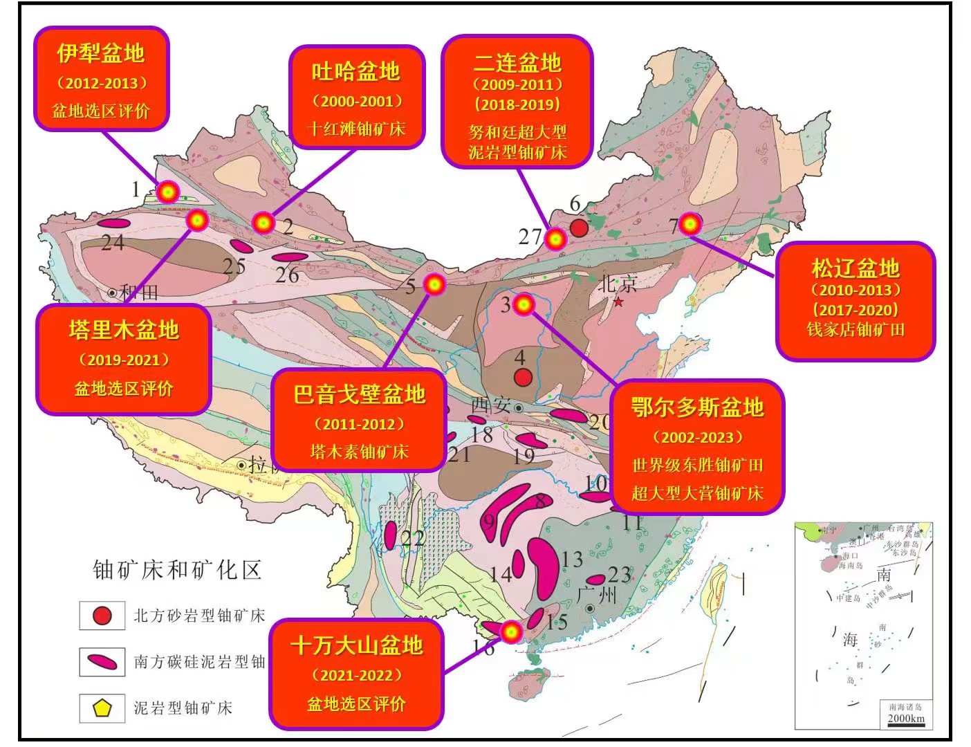 二十多年来焦养泉教授及团队从事盆地铀资源研究的足迹