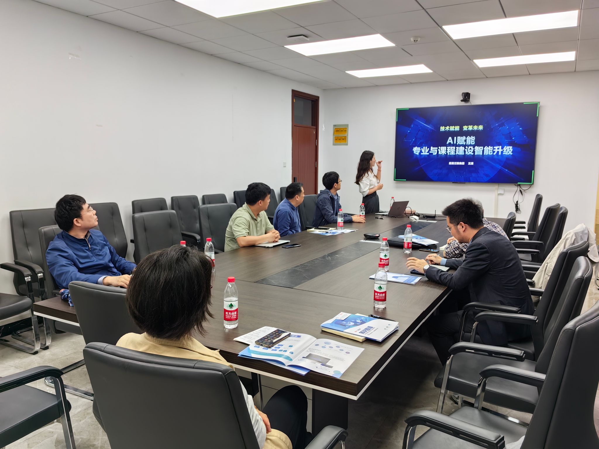 王潇高级讲师作“AI赋能—专业与课程建设智能升级”主题宣讲,解读了在教育部发布“101计划”背景下基于系统化的知识点逻辑关系建立数字化知识图谱的新政策、新背景及新方向,以及为何建知识图谱、知识图谱有何用和如何建知识图谱三个关键问题。他讲解了知识图谱、问题图谱及目标图谱对教材、教学体系及标准的革新,表示结合AI技术可视化、数字化可实现以员工为中心的数智课程转型。与会教师围绕专业课程建设、平台软件使用及相关资源数据应用问题进行咨询与沟通。