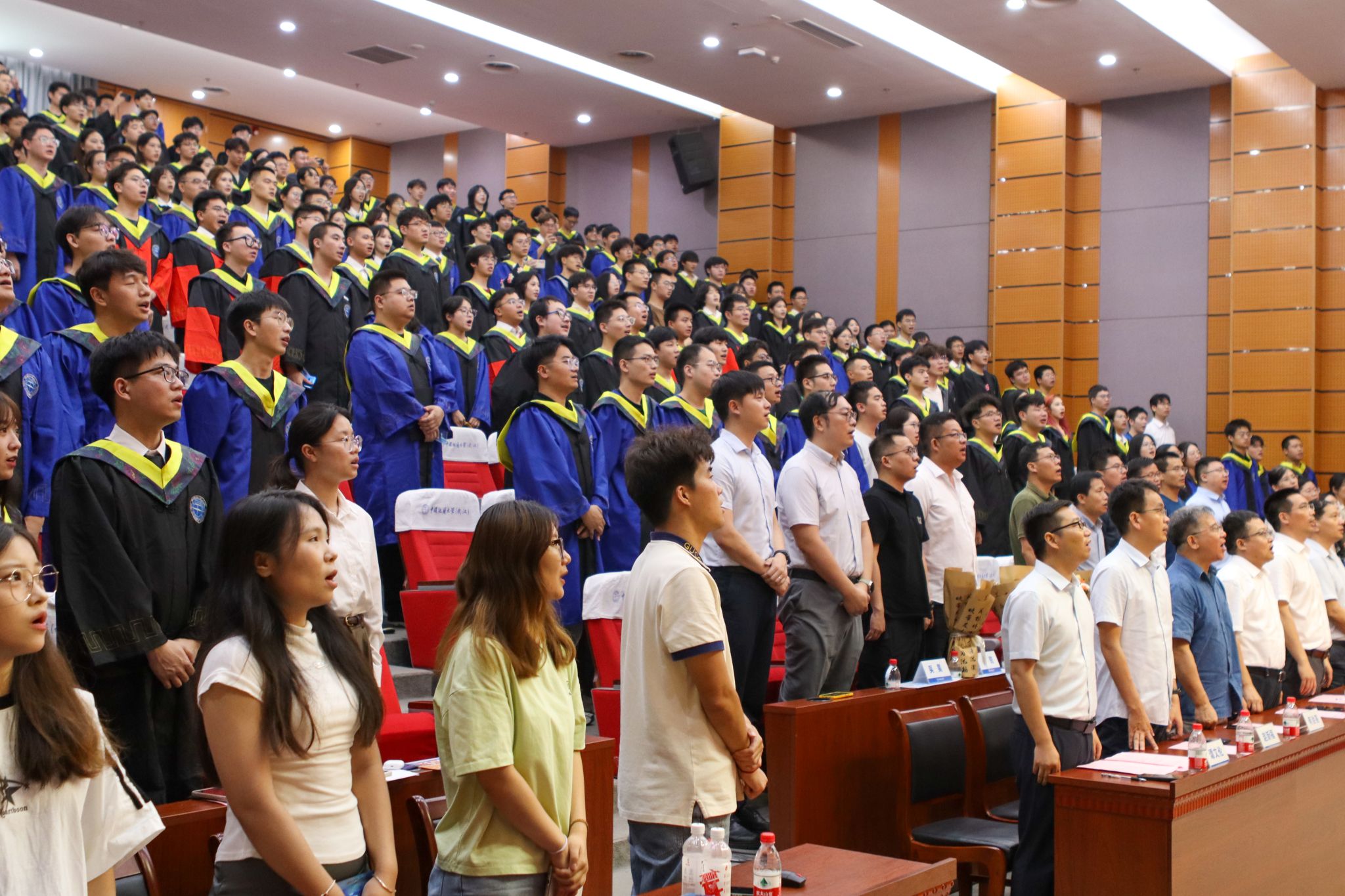 经理严德天以《信念如磐 共赴征程》为题寄语毕业生。他说,2024届毕业生在各自的成长赛道上全力奔跑,都取得了令人喝彩的成绩,为大家的青春成绩一一点赞!毕业不是结束,而是下一段征程的开启。同学们要不断修心、修行。“艰苦朴素 求真务实”的校训,“求实进取 勇攀高峰”的院风学风,深刻凝练了地大人、资源人的精神品格,塑造了我们的意志品质,是我们最宝贵的财富,也是我们面向未来、迈上征程最大的底气,希望同学们牢记于心。“越是充满挑战的时代,越要有明辨是非、去伪存真的能力;越是充满变化的时代,越要有‘任凭风浪起,稳坐钓鱼台’的魄力。严德天叮嘱同学们坚守大志向,积蓄大力量,崇尚大作为,将“小我”的发展融入成就“大我”,以实际行动回答时代命题。